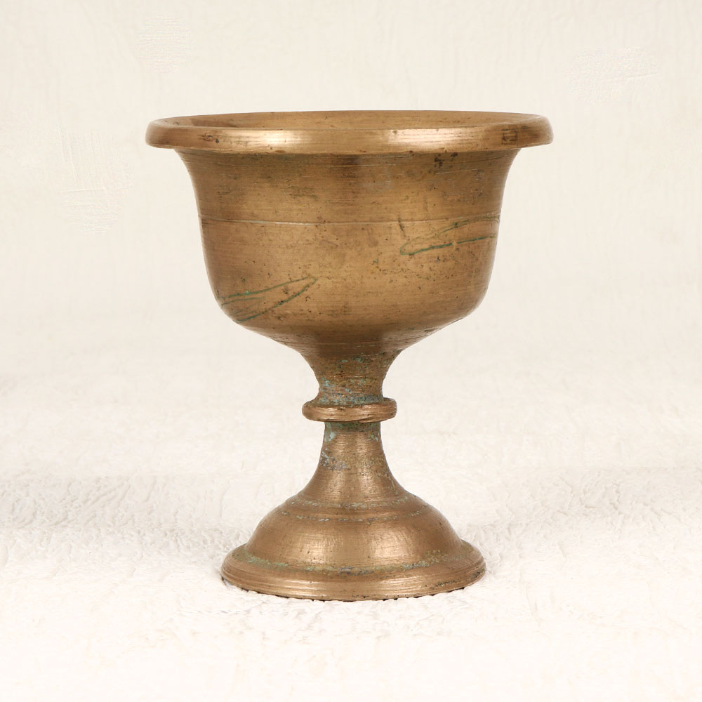Buy a Vintage Brass Kumkum Cup online that is a symbol of cultural richness and spiritual significance. Handcrafted with precision and care by highly talented Indian artisans, this exquisite piece is crafted from high-quality brass, ensuring durability and authenticity. The antique brown finish adds a touch of vintage charm, creating a captivating aesthetic that resonates with the essence of heritage. This kumkum cup, designed for prayer, rituals, and havans, serves as a sacred vessel for holding kumkum tilak - a sacred red powder. Its versatile design makes it suitable for placement in various settings, including homes, offices, restaurants, hotels, or cafes, enhancing the ambiance of prayer rooms or sacred spaces. Beyond its functional purpose, this vintage brass cup becomes a statement piece for decoration and a valuable addition to any vintage collection. The rich cultural history embedded in its design makes it an ideal gift for your family, friends or relatives on special, festive, or auspicious occasions.