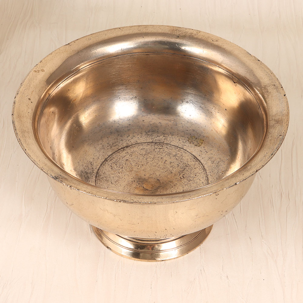 Discover the beauty and power of South Indian artistry with this stunning vintage brass holy pot. Crafted with meticulous attention to detail, this piece is more than just a vessel – it's a work of art that will transport you to a realm of sacred reverence. This holy pot is a true testament to the skill and craftsmanship of South Indian artisans. Imagine the feeling of pouring consecrated water over the idol of your chosen deity, the weight of the brass in your hands, and the energy it emanates. It's a moment of pure, meditative bliss that will elevate your spiritual practice to new heights. Whether you're a devout practitioner or simply someone who appreciates fine craftsmanship, this vintage brass holy pot is a must-have addition to your sacred space. Invite the blessings of the gods into your home and let this exquisite piece become a cherished centerpiece in your spiritual journey. Elevate your rituals, deepen your devotion, and experience the transformative power of this stunning holy pot.