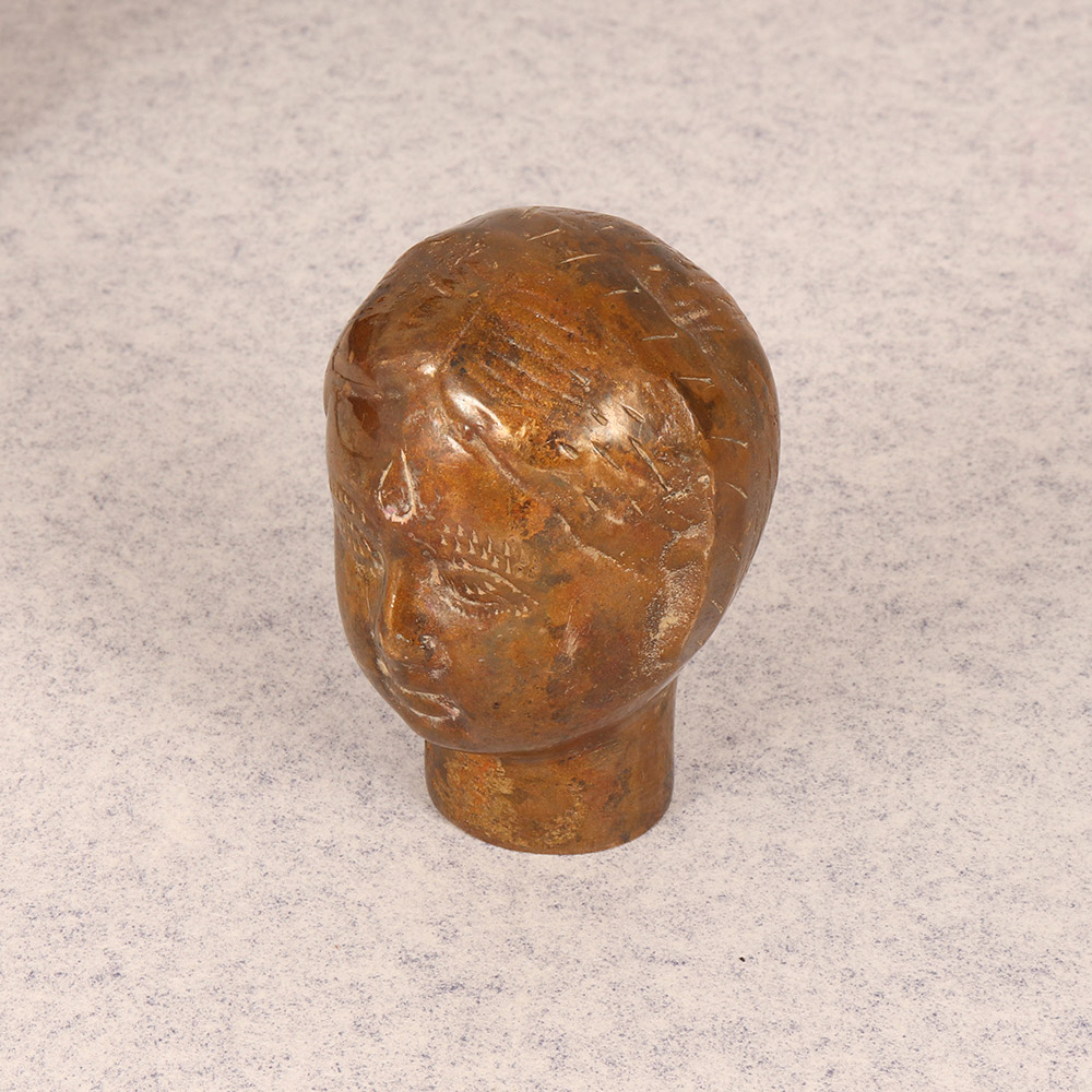 Discover the allure of a bygone era with this exquisite vintage brass small lady head. Crafted with meticulous attention to detail, this stunning sculpture emanates an air of sophistication and timeless elegance that will transport you to a world of refined beauty. This brass lady head is more than just a decorative piece - it's a work of art that celebrates the power and grace of the female spirit. Display it proudly in your home or office, and let it inspire you to embrace your own inner goddess. Whether you're drawn to its timeless elegance or its connection to a bygone era, this captivating sculpture is sure to captivate all who lay eyes on it. Elevate your space and awaken your senses with this stunning vintage brass small lady head. Treat yourself or surprise a loved one with this truly remarkable piece that blends function and artistry in perfect harmony.