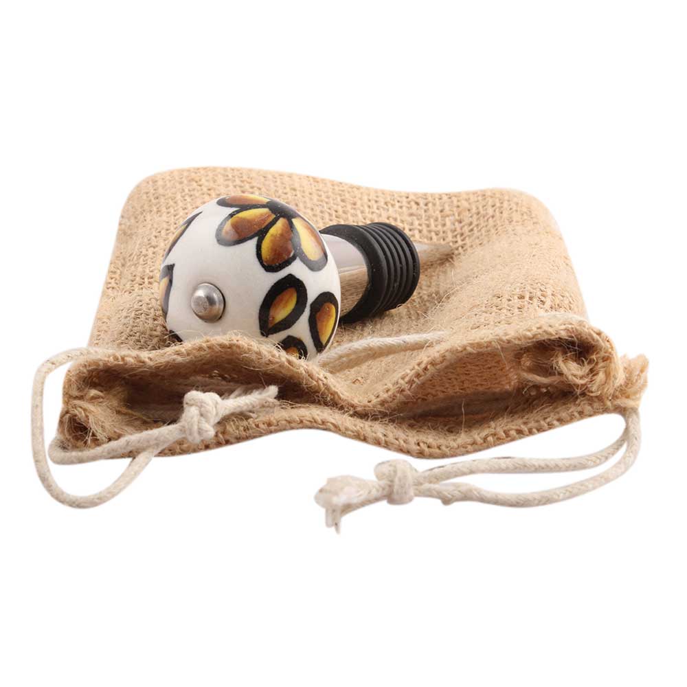 Brown Hibiscus Flower Ceramic Wine Stopper.zinc alloy wine bottle stopper.