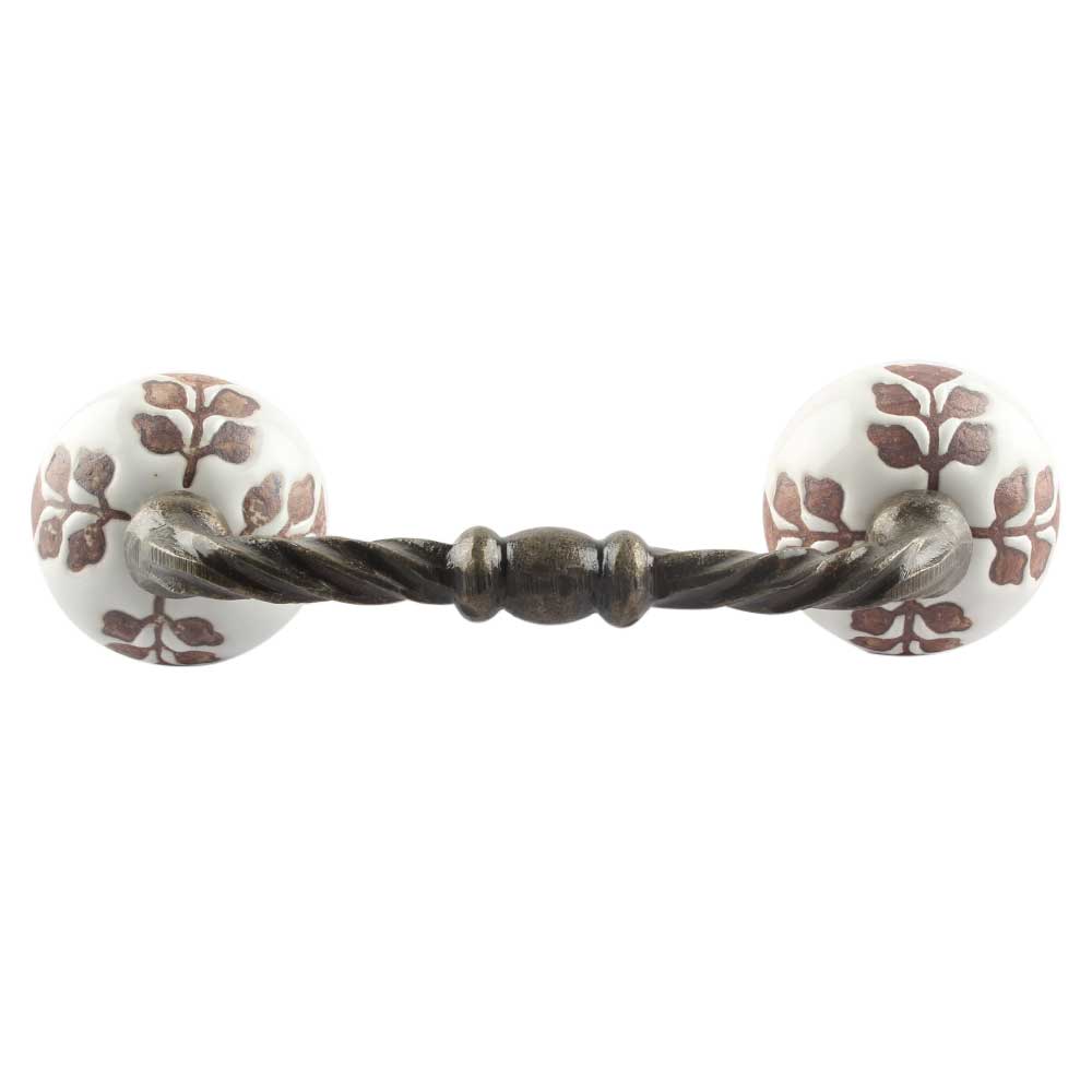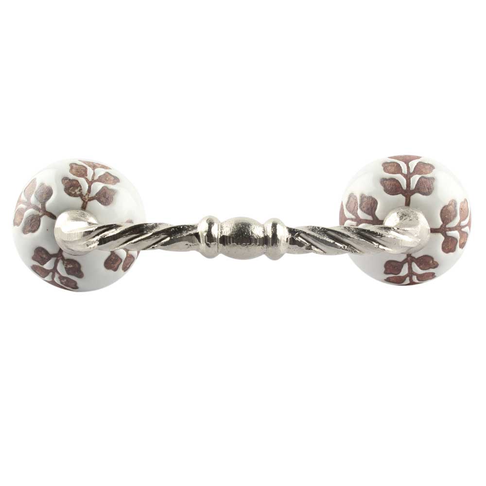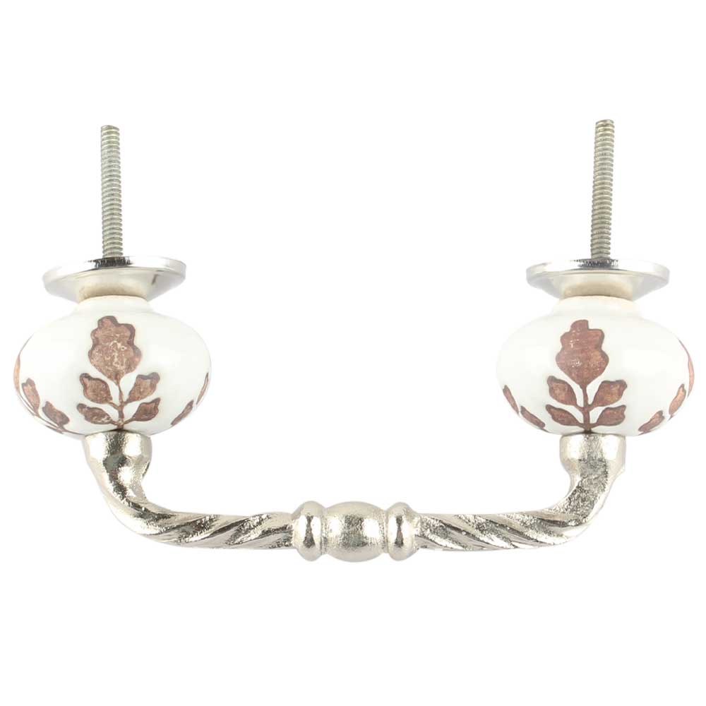 Brown Leaf Cut Flower Etched Ceramic Cut Bridge Handle Online. Ideal for Drawer, Dresser, Cabinet, Wardrobe, Cupboard and Almirah etc.
