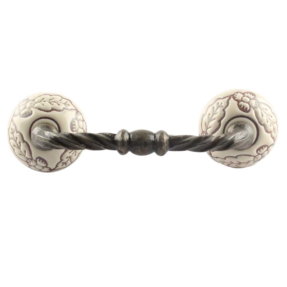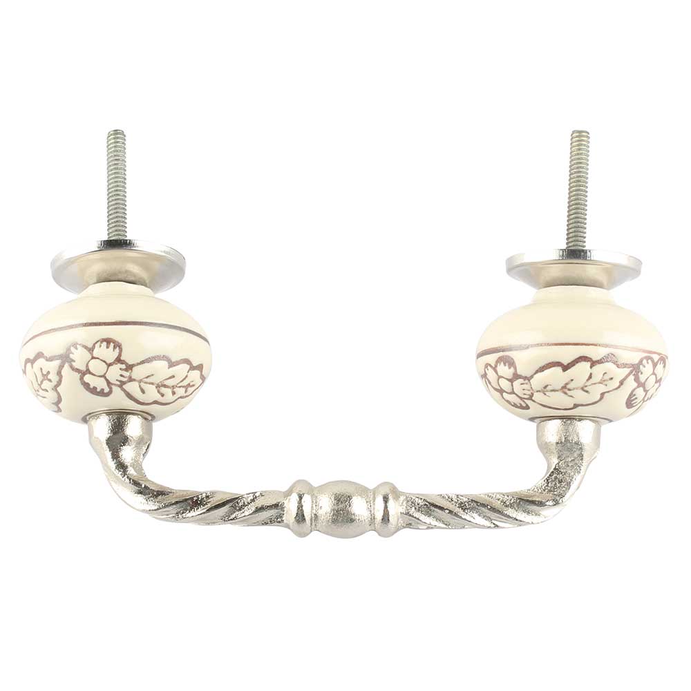 Brown Leaf Flower Etched Ceramic Cut Bridge Handle Online. Ideal for Drawer, Dresser, Cabinet, Wardrobe, Cupboard and Almirah etc.