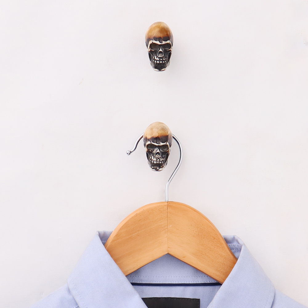 Handmade Brown Man Face Skull Resin Wall Hooks is perfect for hanging towels, clothes, hats, bags, keys, scarves and jackets.