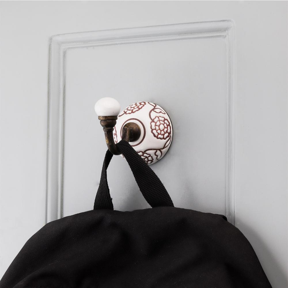 Brown Marigold Flower Etched Ceramic Wall Hook. When Put on Wall or Cabinet It is An Art in Itself. This Hook is Strong Enough to Hold Your Cloths, Keys, Tea Cups, Coffee Mugs, Hand Towels etc.