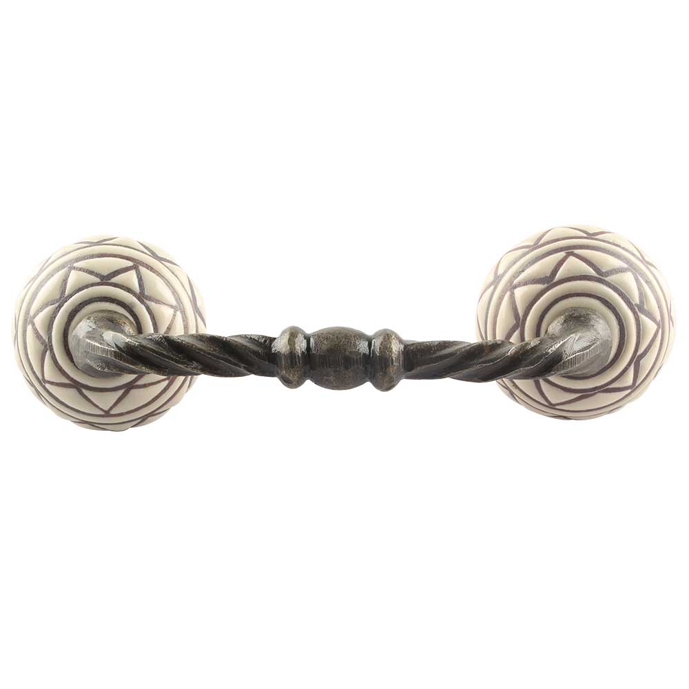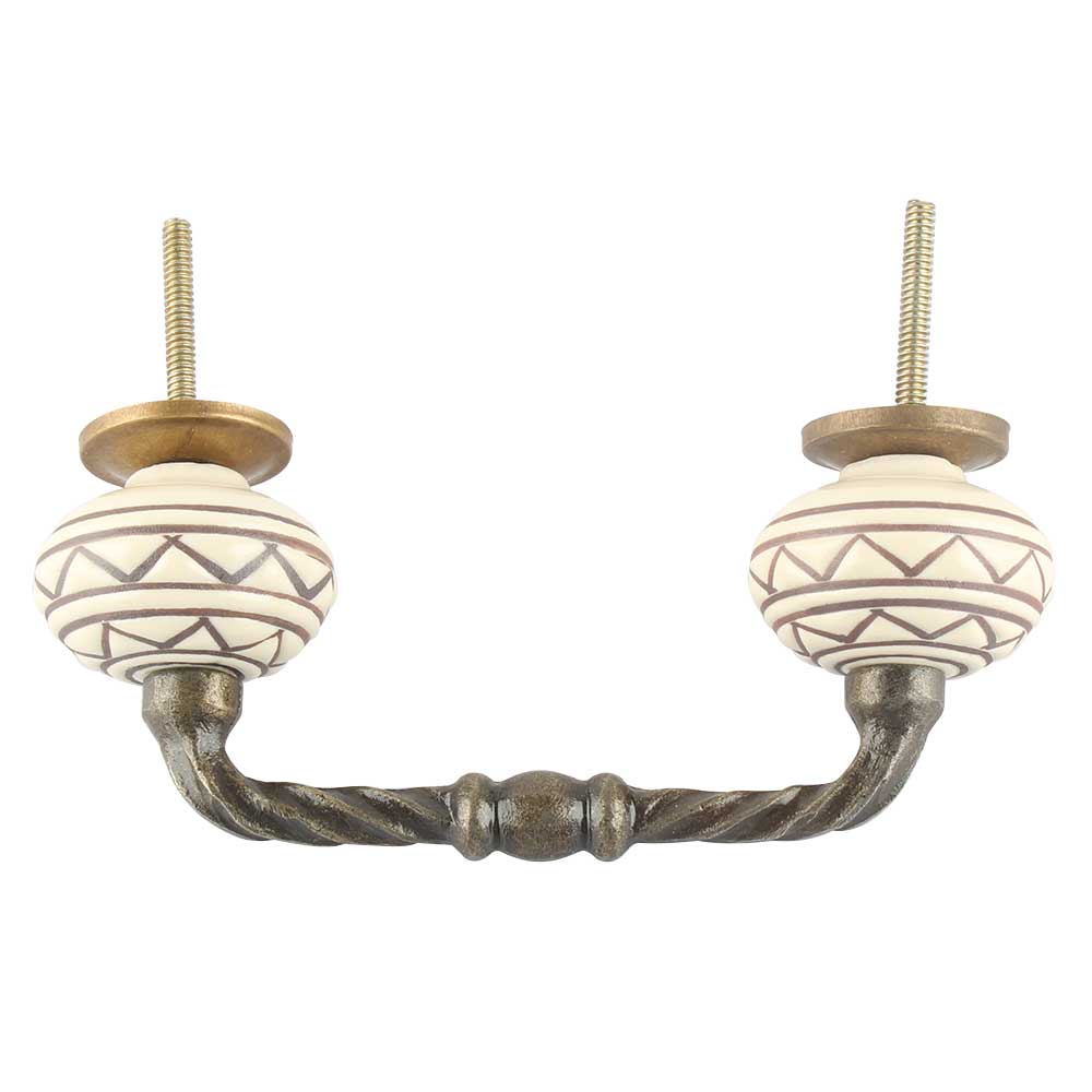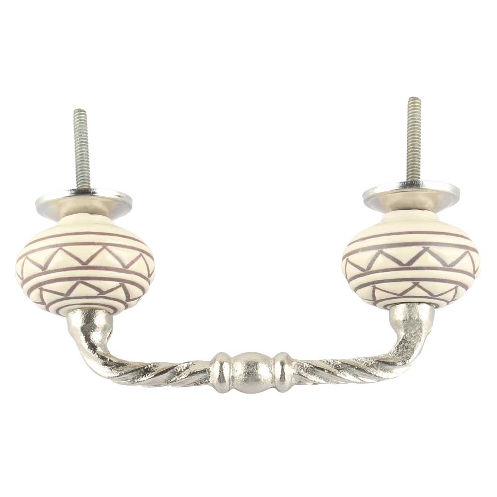 Brown Pattern Etched Ceramic Cut Bridge Handle. Ideal for Drawer, Dresser, Cabinet, Wardrobe, Cupboard and Almirah etc.