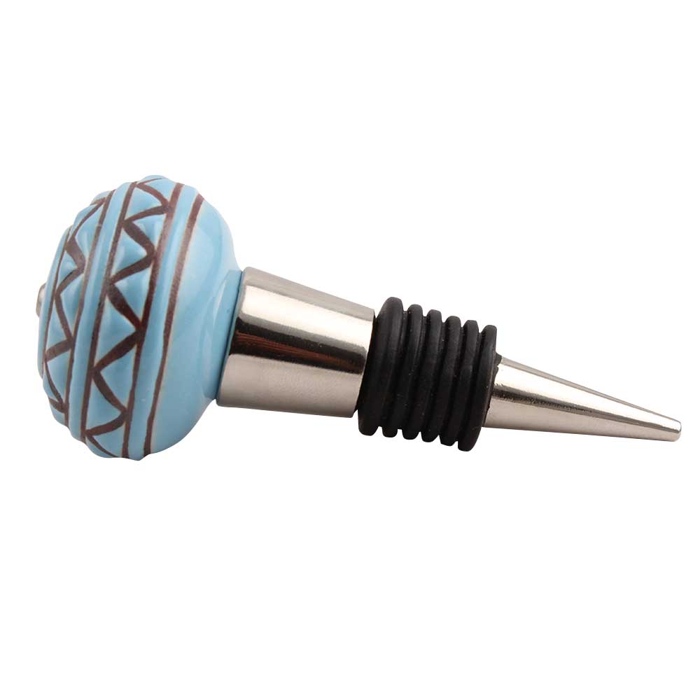 Brown Pattern Etched Ceramic Wine Stopper.zinc alloy wine bottle stopper with attractive Jute Bag Packaging.