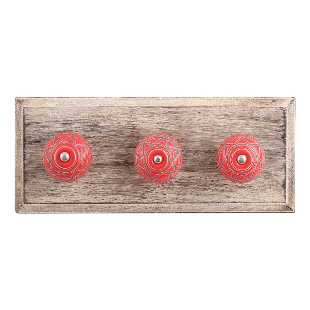 Brown Pattern Etched Ceramic Wooden Hook. A Perfect Complement to the Soft Tone of the Wood are these White Traditional Hat Coat Hook Made of Genuine Porcelain and Brass. It can be use to Hang Jewellery, Leashes, Towels, Scarves, Light Weight Sweaters, Caps Etc.