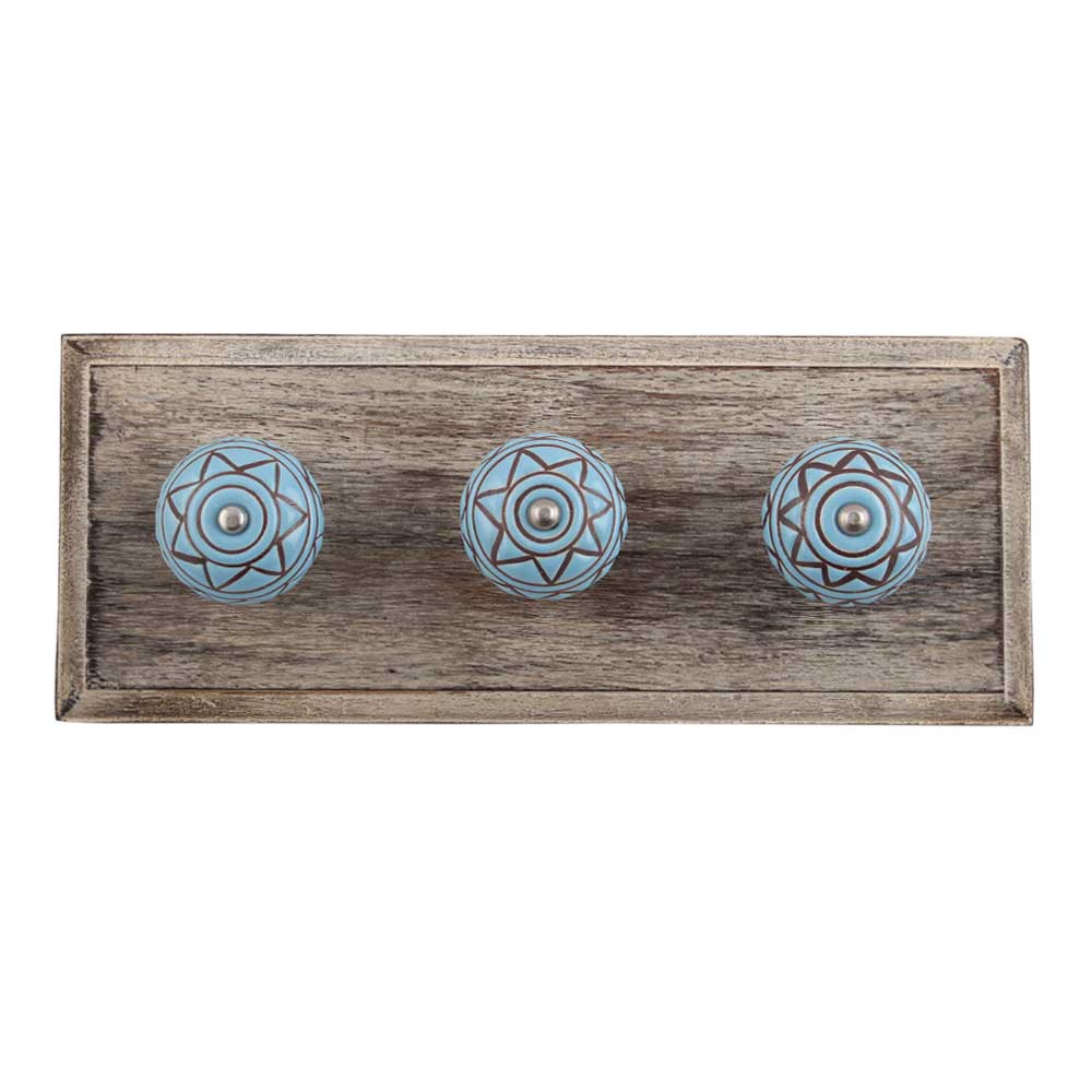 Brown Pattern Etched Ceramic Wooden Hook. A Perfect Complement to the Soft Tone of the Wood are these White Traditional Hat & Coat Hook Made of Genuine Porcelain and Brass. It can be use to Hang Jewellery, Leashes, Towels, Scarves, Light Weight Sweaters, Caps Etc.