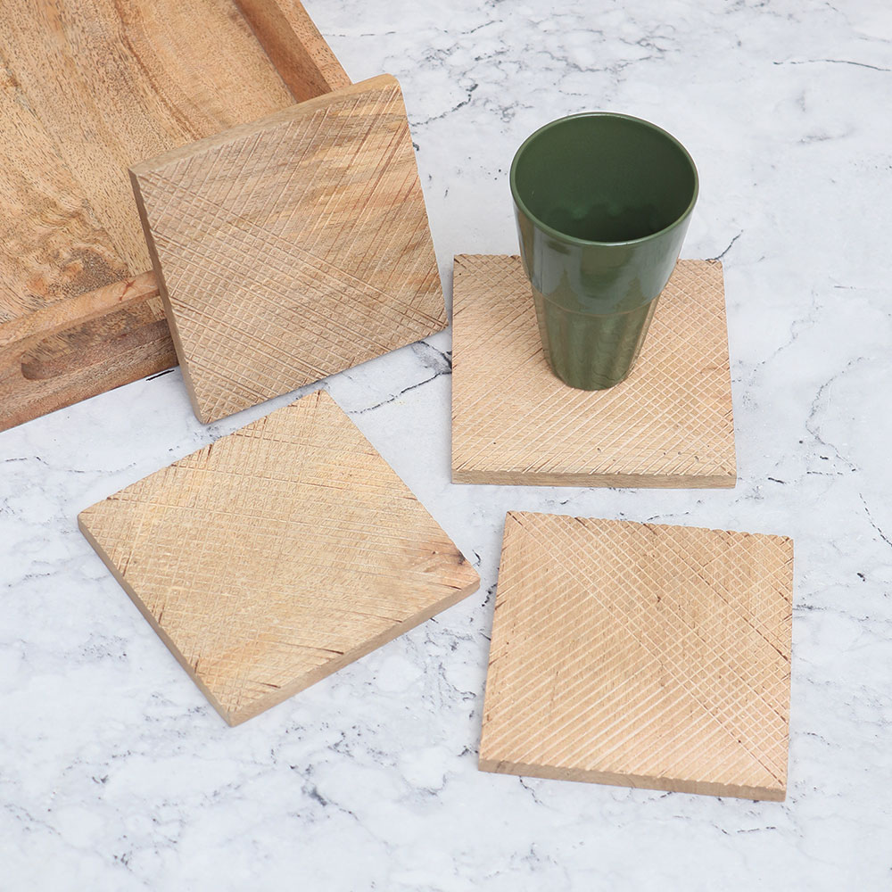 This exquisite Pack of 4 wooden tea coasters is handmade by talented Indian artisans. Made from high-quality wood, these square-shaped coasters are a true testament to traditional craftsmanship. Each coaster showcases a beautiful brown-coloured pattern and features an antique finish, adding an elegant touch to any space. Not only are these coasters a functional addition to your home or office, but they also serve as a stunning decorative piece. Designed to hold water, tea, juice, or coffee glasses, they effectively prevent stains on surfaces, ensuring your furniture remains in pristine condition. Ideal for use in homes, offices, restaurants, hotels, or cafes, these wooden coaster sets bring a touch of sophistication to any setting. They also make for a thoughtful gift for your family, friends or relatives on special or festive occasions, showcasing your appreciation for fine craftsmanship and timeless design.