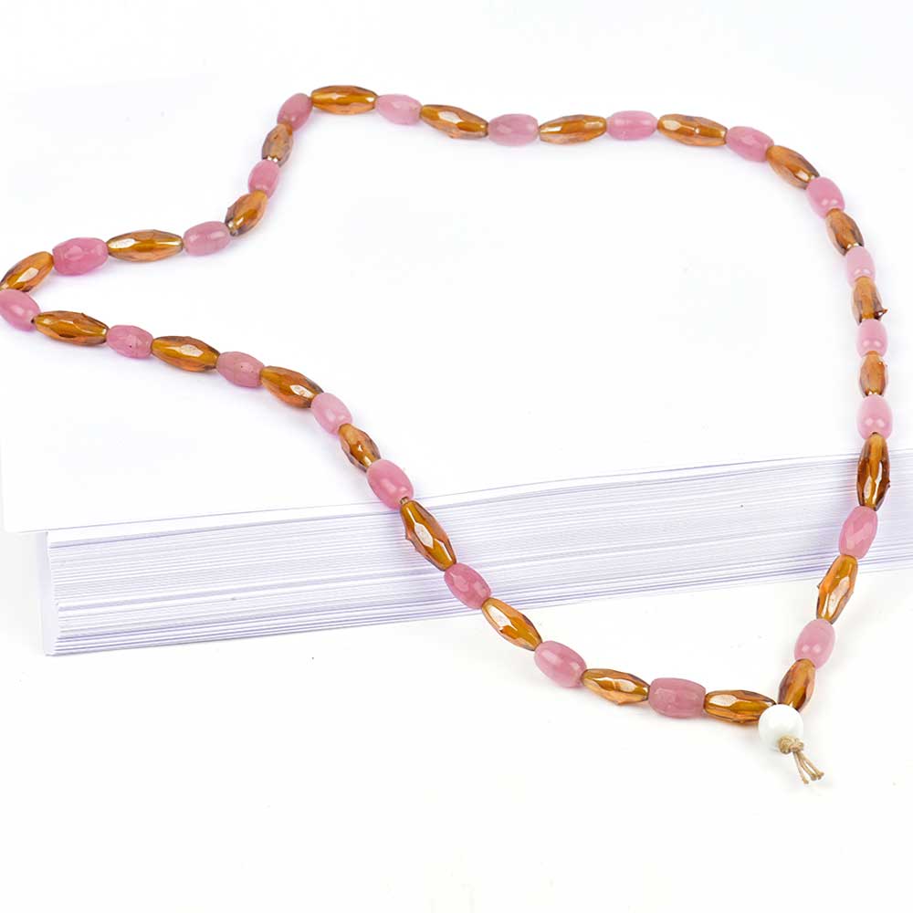 This Brown & Pink Mixed Bead Necklace brings together earthy warmth and gentle femininity through carefully arranged glass beads. Each bead is hand-strung by artisans who balance color and form to create a harmonious rhythm of natural brown and soft pink hues. The result is a necklace that feels grounded yet graceful — perfect for those who appreciate handcrafted jewelry that speaks quietly yet beautifully.