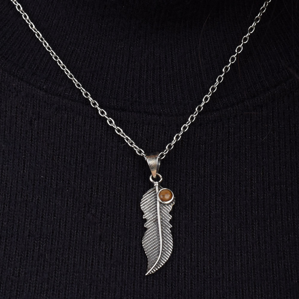 Brown Stone 92.5 Sterling Silver Feather Pendant is very elegant and suits all casual, formal and office wear. Wedding , anniversary birthday party etc. It is also the perfect gift for your family and friends on the occasion Diwali, Christmas or new year party. It can also be worn to a small family gathering.