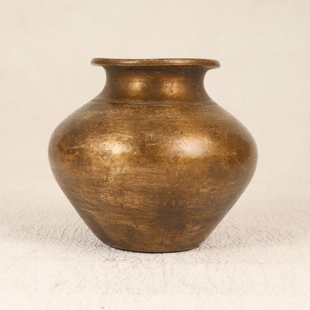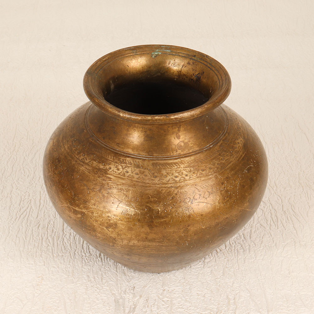 Enhance your spiritual space with this Vintage Brass Holy Water Pot which is a testament to South Indian artistry and craftsmanship. Handmade by highly talented Indian artisans, this holy water pot is a timeless piece that seamlessly blends antique aesthetics with functionality. Crafted from high-quality brass, it boasts an elegant antique brown finish, adding a touch of old-world charm to any setting. Ideal for prayer, rituals, and havans, this pot serves as a sacred vessel to hold holy water. Its versatile design allows it to grace the ambiance of homes, offices, restaurants, hotels, or cafes, enhancing the atmosphere of prayer rooms. Beyond its religious purpose, this pot can double as an indoor flower pot, infusing your space with a unique and vintage allure. A true collector's item, this vintage piece is a thoughtful gift for your family, friends or relatives on special, festive, or auspicious occasions.