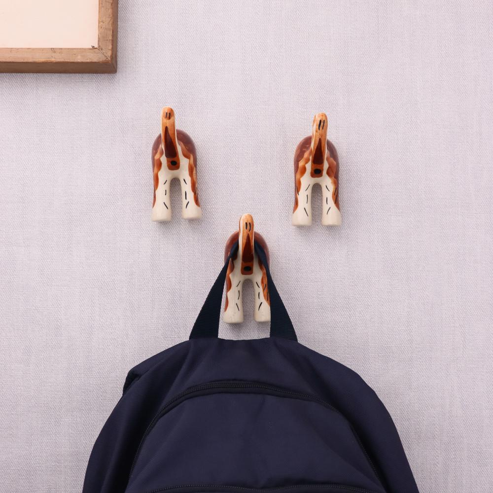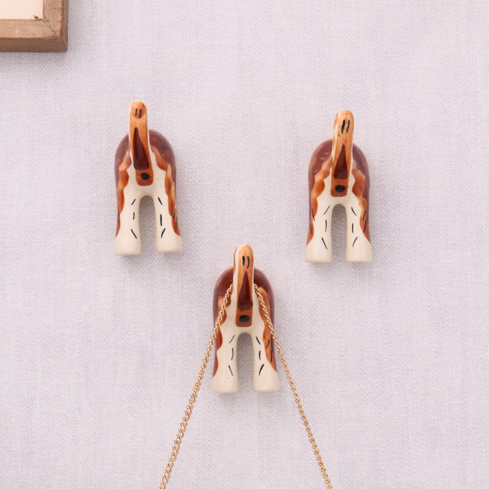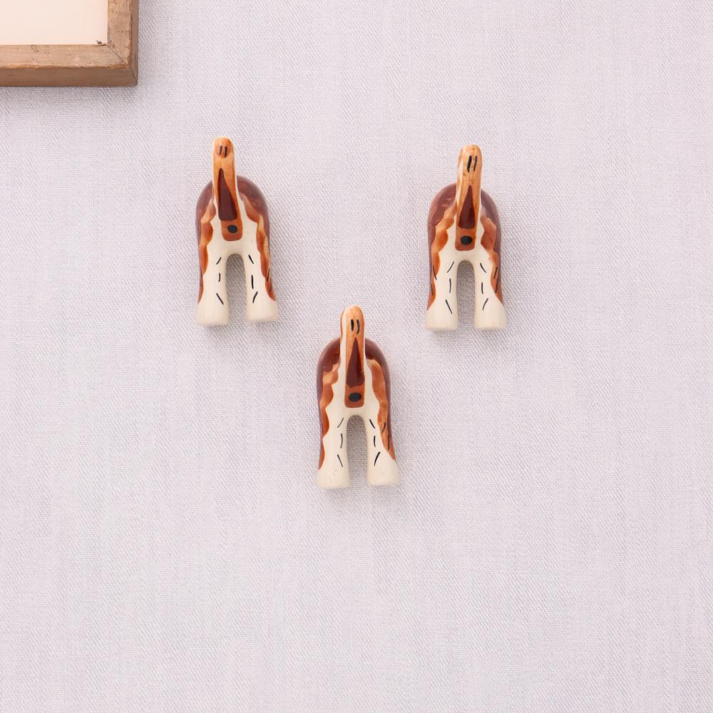 Brown White Ceramic Dog Tail Shaped Wall Hooks Set of 3. This Hook is Strong Enough to Hold Your Cloths, Keys, Tea Cups, Coffee Mugs, Hand Towels Etc.