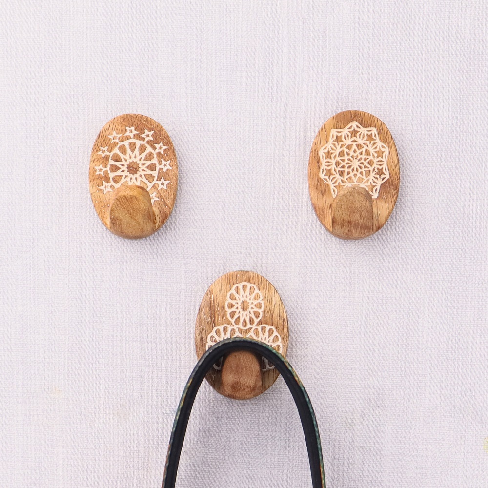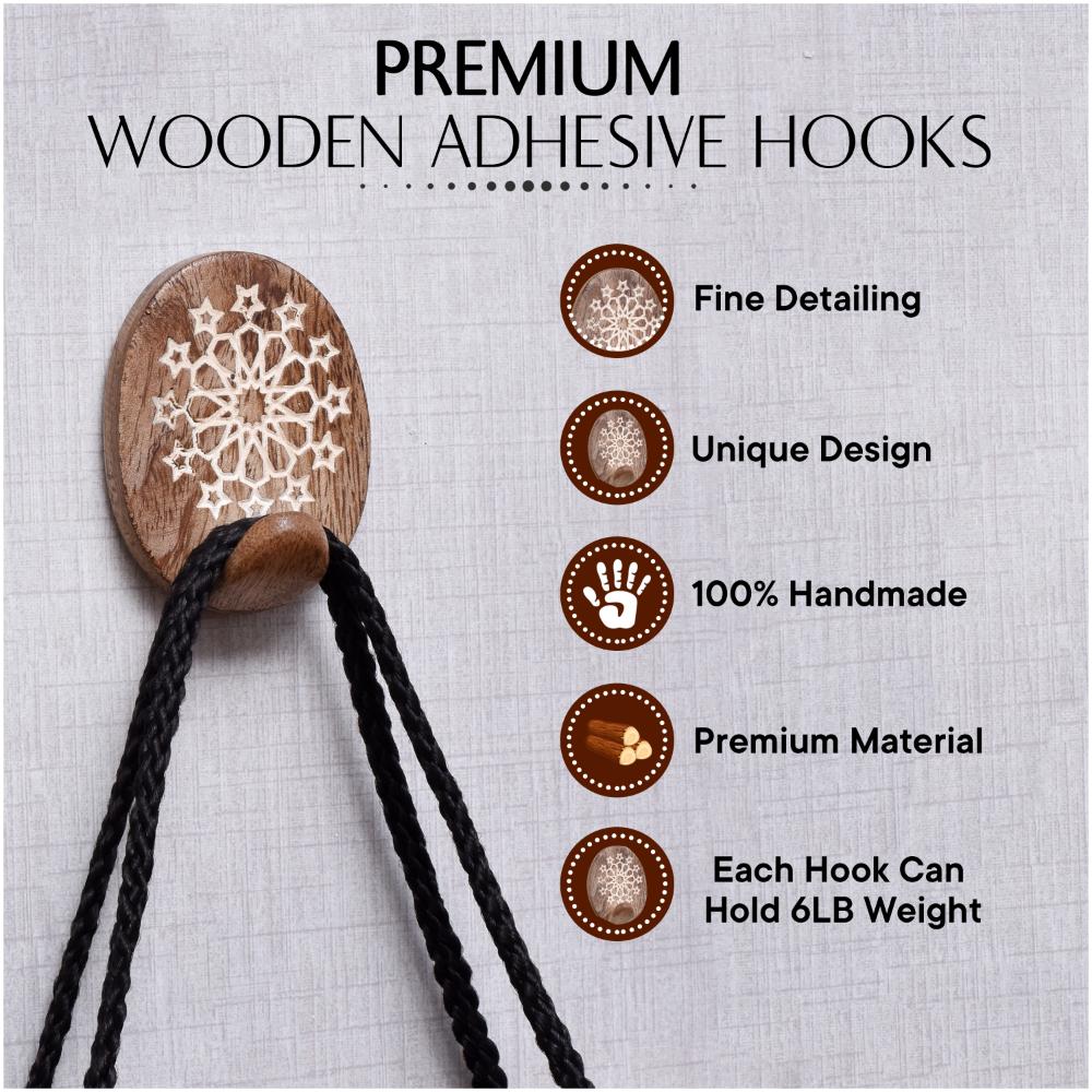 Handmade adhesive wooden wall hook is perfect for hanging towels, clothes, hats, bags, keys, scarves and jackets. It's very easy to mount on a wall or door.