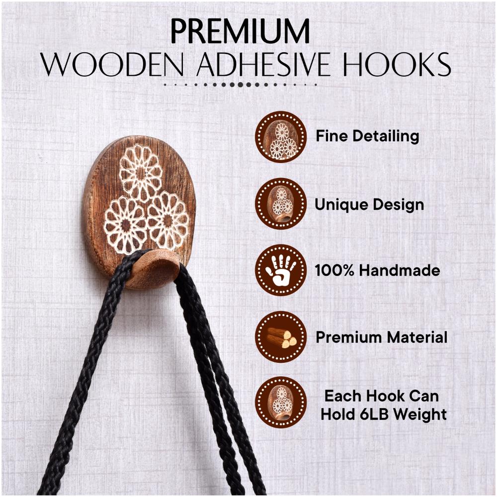 1. Damage-Free Hanging 2. Natural Wooden Look 3. Easy to Install and Remove 4. Hygienic and Easy to Clean For best results, press the hook firmly and allow it to set for 24 hours before hanging anything.