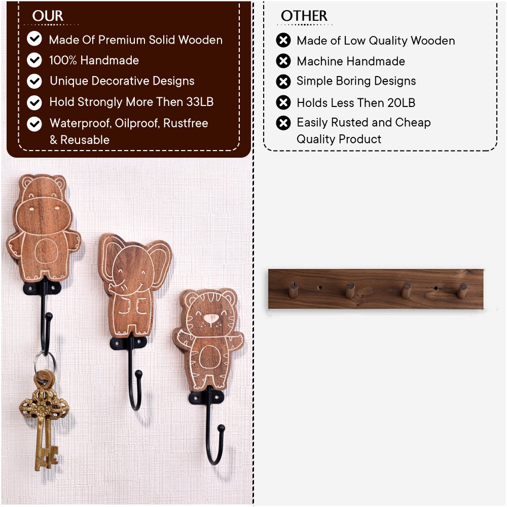 These elephant-inspired hooks are not just decorative pieces but are also designed to offer practical storage solutions for your home. The sturdy wooden construction ensures that these hooks can support your everyday items, while the intricate elephant design adds an exotic flair to your space. With their blend of functionality and beauty, these hooks provide the perfect balance of charm and utility.