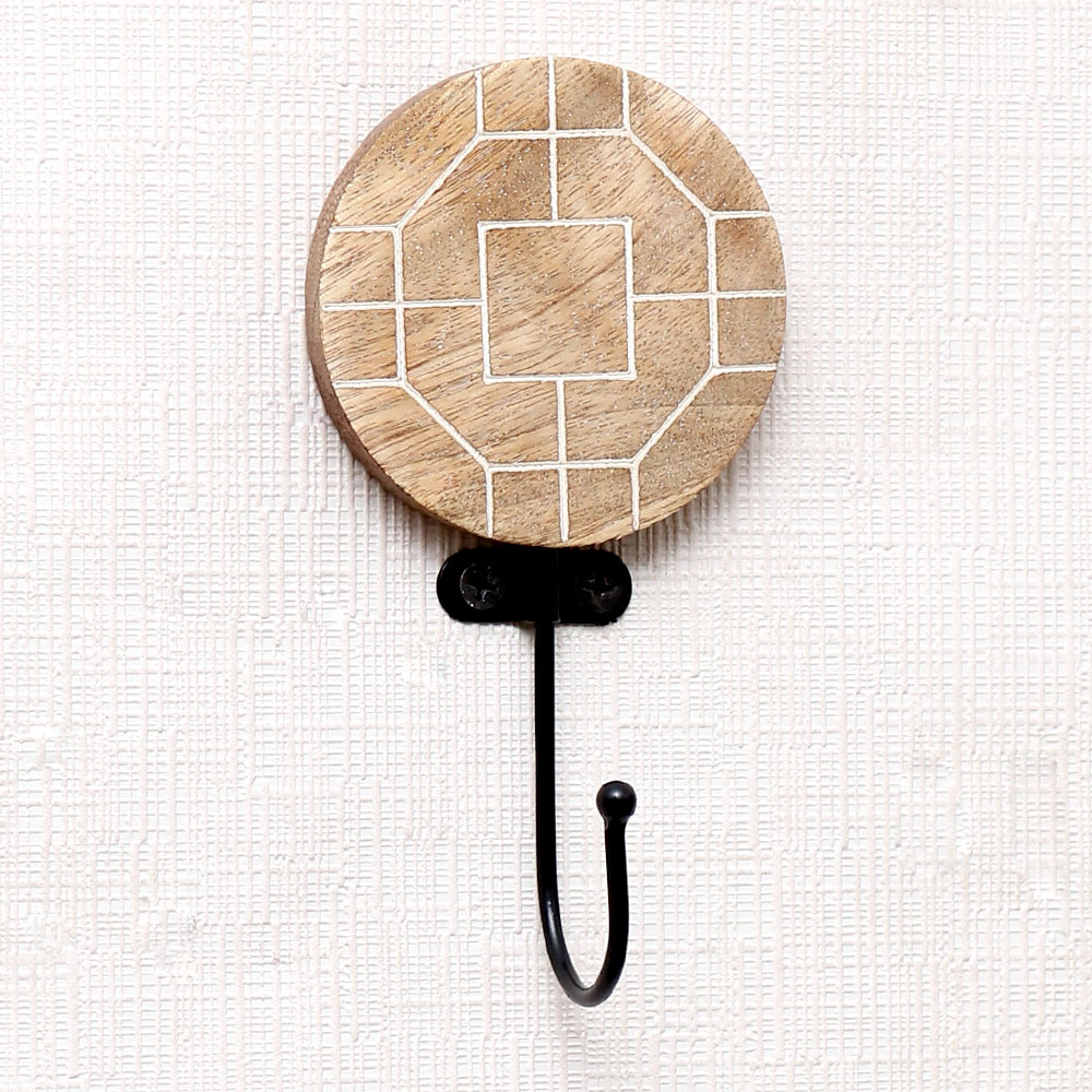 The Brown Wooden Geometric Pattern Hook is where contemporary design meets timeless craftsmanship. Skillfully handcrafted by Indian artisans, this wall hook features a sleek geometric pattern carved into solid wood, offering both visual interest and functional elegance. The warm brown tone and minimalistic lines add depth and sophistication to any wall, making it a versatile piece for modern homes. Whether used solo or in a set, this hook adds structure and style to everyday organization.