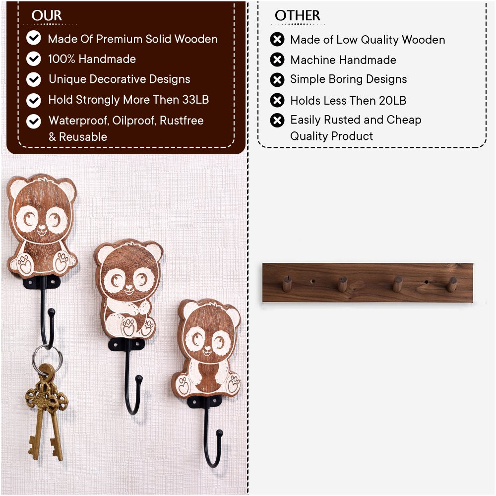 Make everyday organizing a little more delightful with the Brown Wooden Panda Coat Hook. Carefully handcrafted from solid wood, this wall hook features an adorable panda design that’s perfect for kids’ rooms, playful home corners, or animal-themed spaces. The combination of fine detailing and a smooth brown finish creates a charming piece that blends fun with functionality. Whether it's a coat, bag, or scarf—this panda hook handles it all while adding a touch of warmth and personality to your wall.