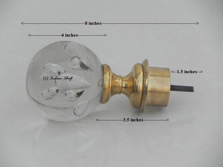 The piece stands 9" tall and the diameter of the orb is approximately 4"
