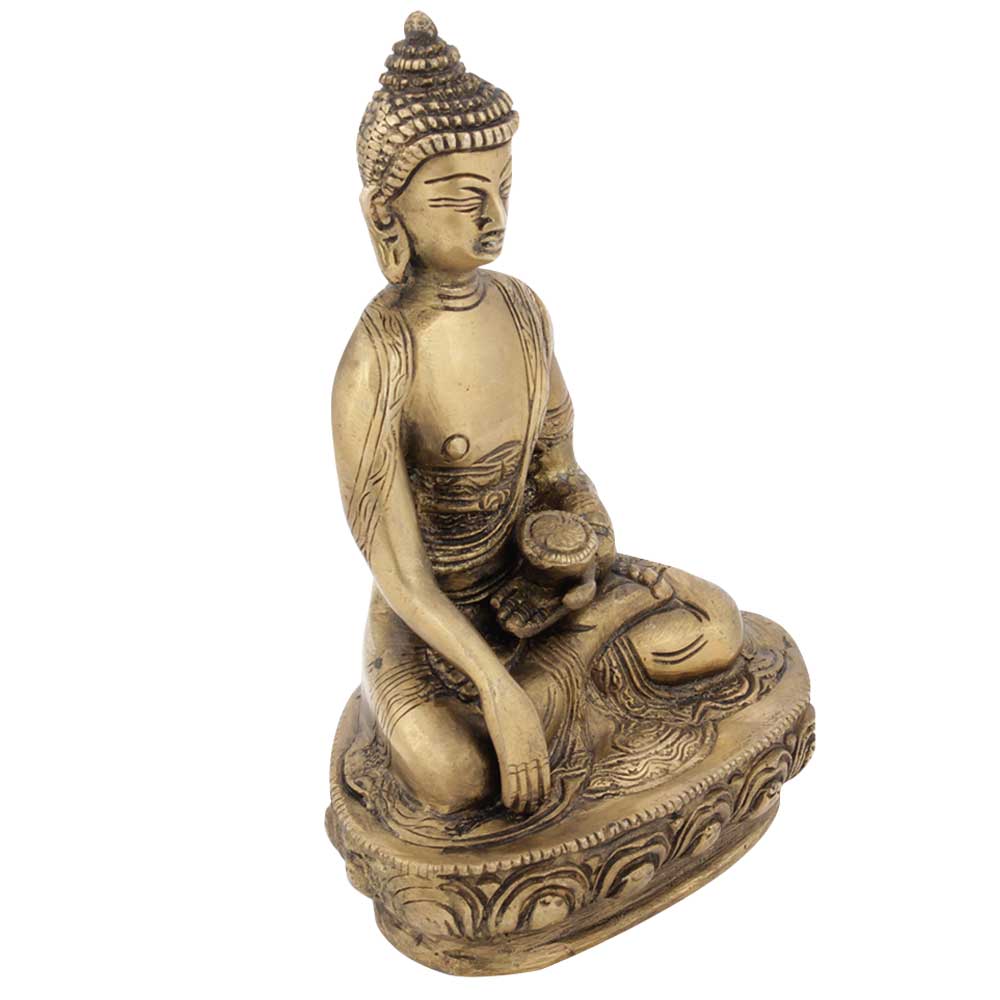 In the Bhumisparsha Mudra or Gesture, Buddha Calls Upon the Earth to Witness His Claim to Be Known as “The Enlightened One. ” He Points Towards the Earth with His Right Hand and in Response Bahu Devi, the Earth Goddess, Lets Flow a Stream of Sacred Water At Buddha's Feet. Each Drop of Water Symbolizes An Act of Merit Performed by Buddha in His Previous Incarnations on Earth. The Eight Auspicious Symbols of Buddhism - the Conch Shell, Endless Knot, Fly Whisk, Lotus Blossom, Parasol, Twin Fish, Water Vase and Wheel of Dharma are Inscribed on the Body of Buddha.