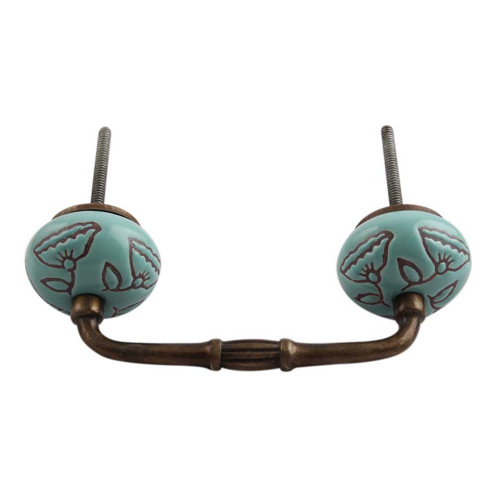 Calla Lily Brown Etched Ceramic Bridge Handle. Ideal for Drawer, Dresser, Cabinet, Wardrobe, Cupboard and Almirah.