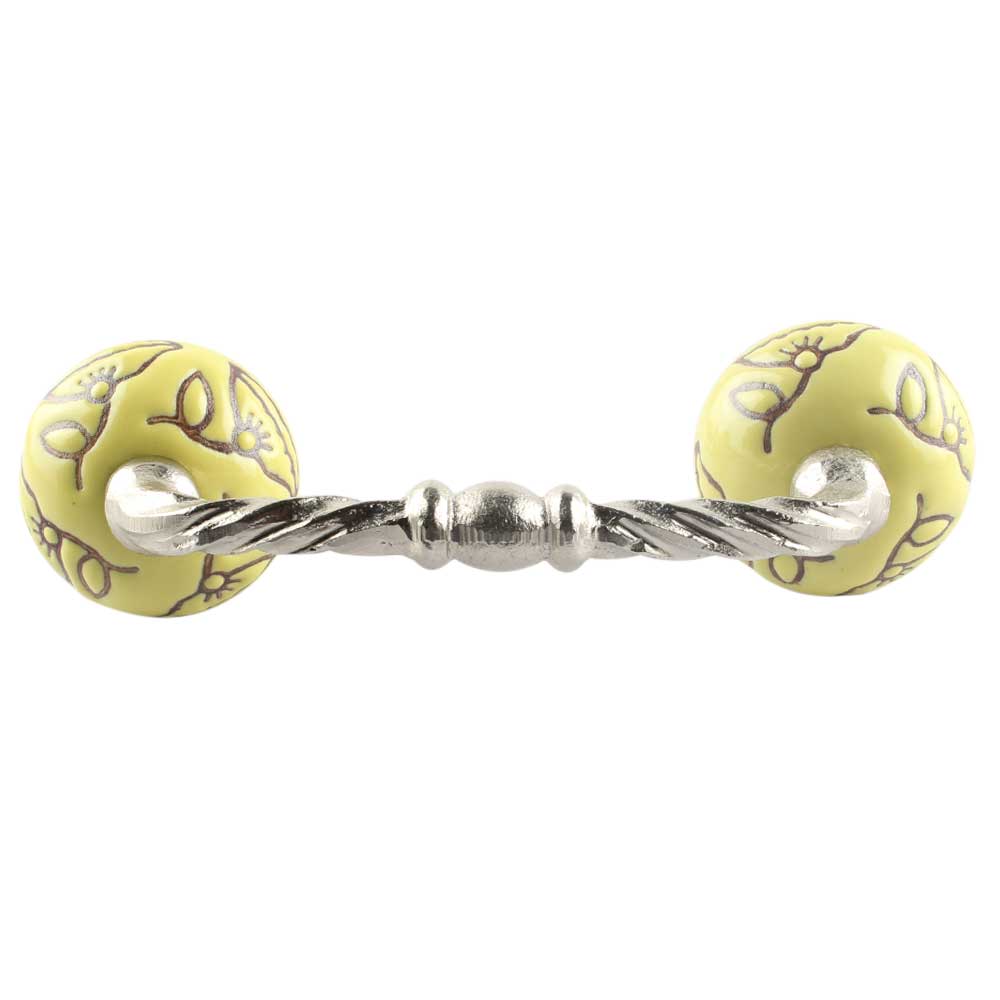 Calla Lily Brown Etched Ceramic Cut Bridge Handle in Yellow. Ideal for Drawer, Dresser, Cabinet, Wardrobe, Cupboard and Almirah etc.