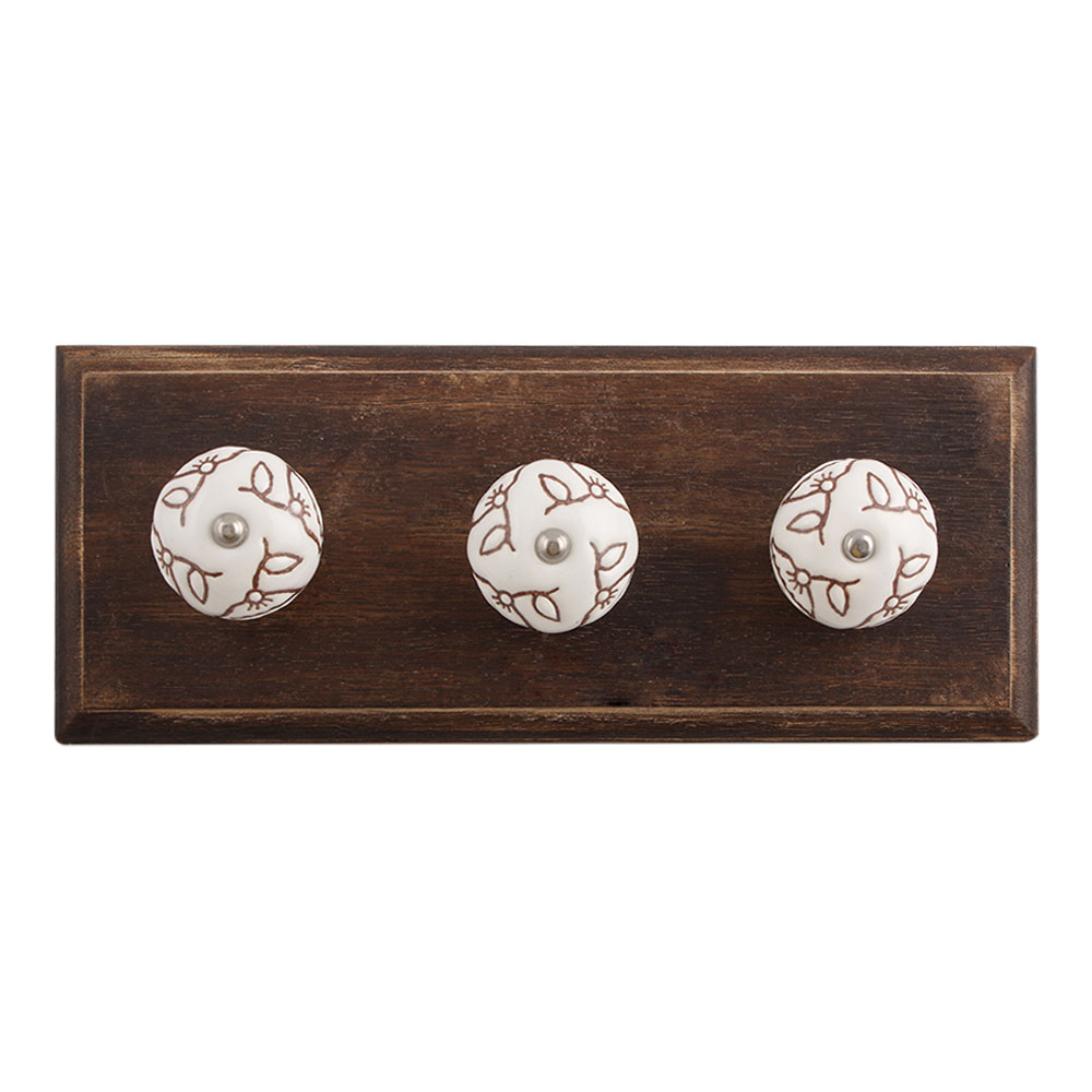 Calla Lily Brown Etched Ceramic Wooden Hook. A Perfect Complement to the Soft Tone of the Wood are these White Traditional Hat & Coat Hook Made of Genuine Porcelain and Brass. It can be use to Hang Jewellery, Leashes, Towels, Scarves, Light Weight Sweaters, Caps Etc.