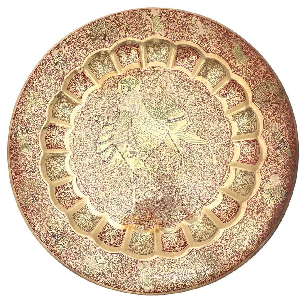 The camel-rider embellished decorative tray is crafted from conventional yet sophisticated Rajasthani crafting methods. These plates form a core part of Royal decor, making them an epitome of authentic Indian heritage and culture. A small investment in a pair can go a long way to redefine your home decor. Choose to display a camel-rider embellished decorative tray along with a neutral background or at the entrance to display your incredible taste in arts and history.