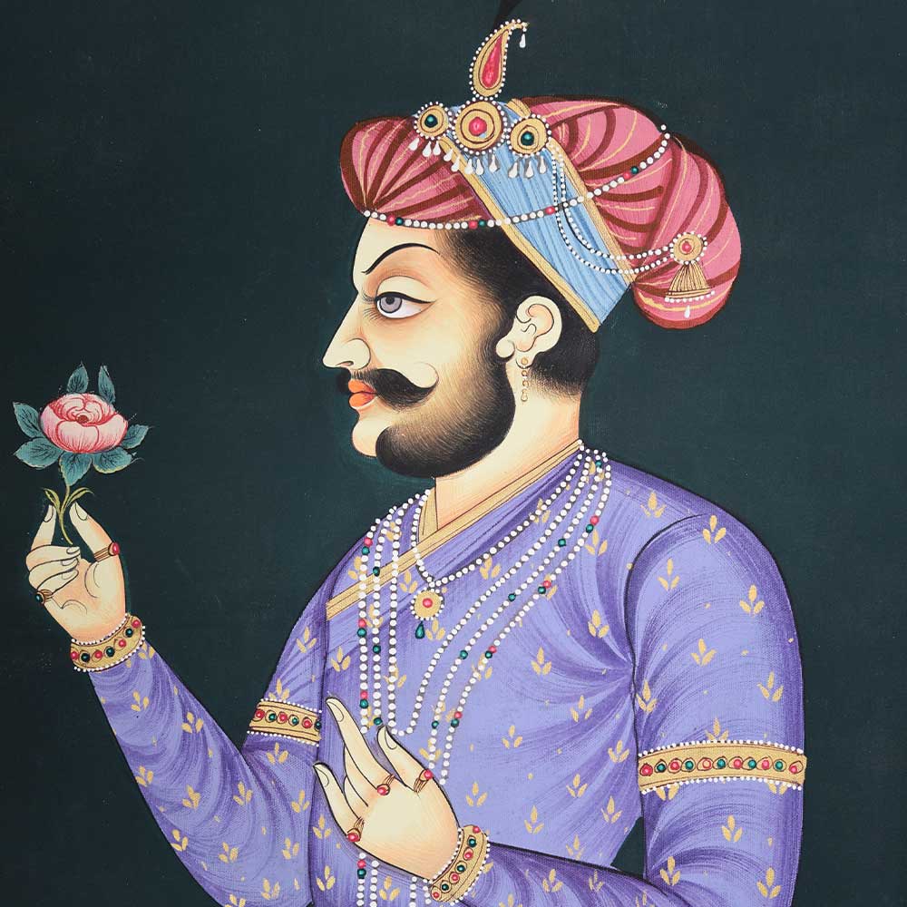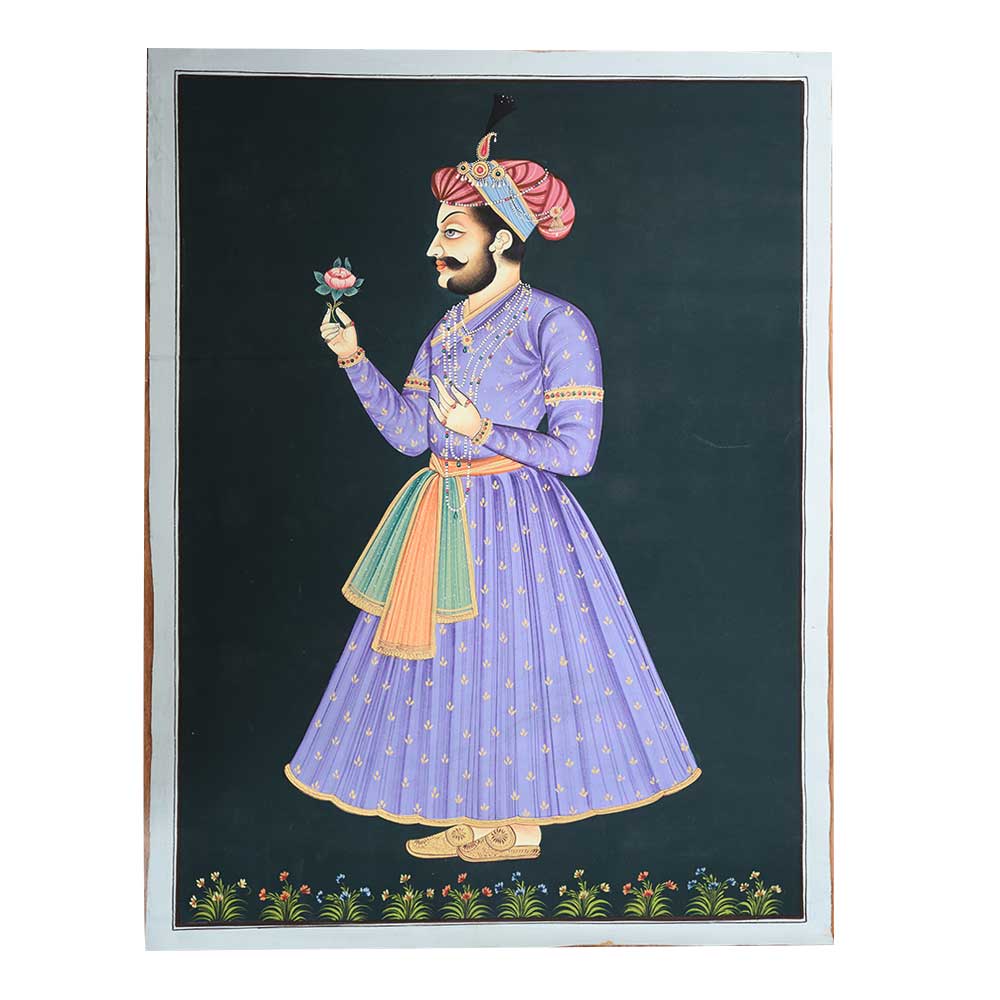 This Canvas handmade Mughal painting of emperor Jahangir on a black background is a perfect Diwali, birthday, Christmas and new year gift for your relatives and friends for any happy occasion