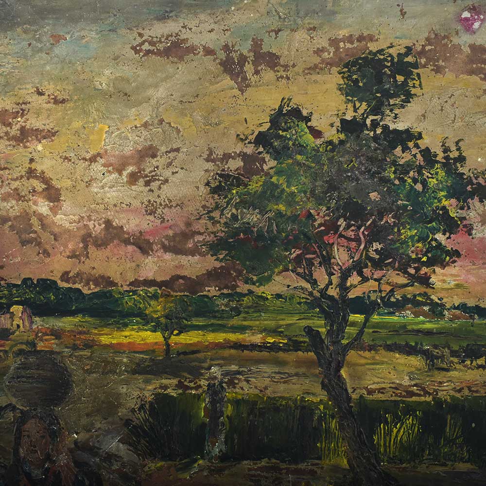 This lovely hand-painted canvas acrylic artwork depicts a peasant woman fetching water against a countryside setting. It's a great thing for hanging on the wall and can also be used as a new present item.