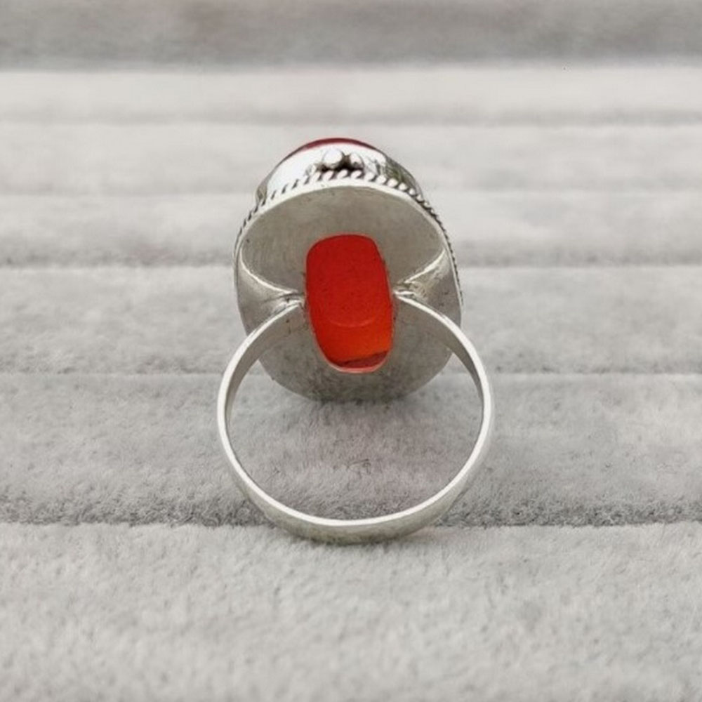 • Carnelian Cabochon 925 Sterling Silver Ring Handmade Boho Jewelry