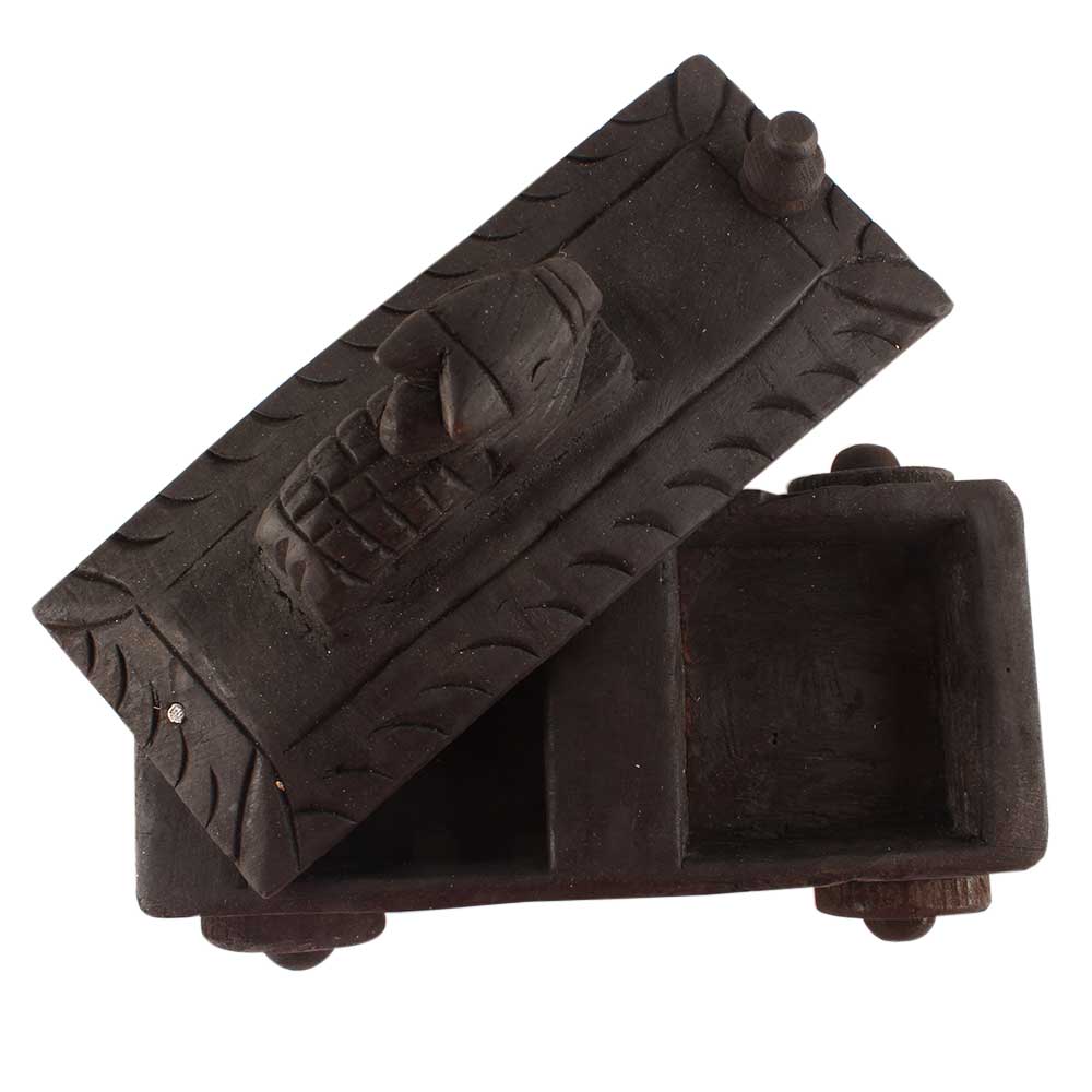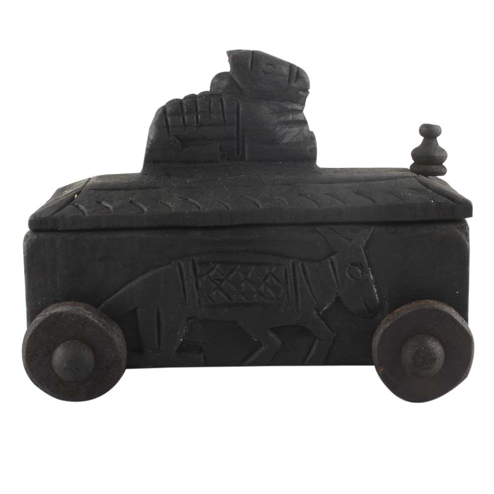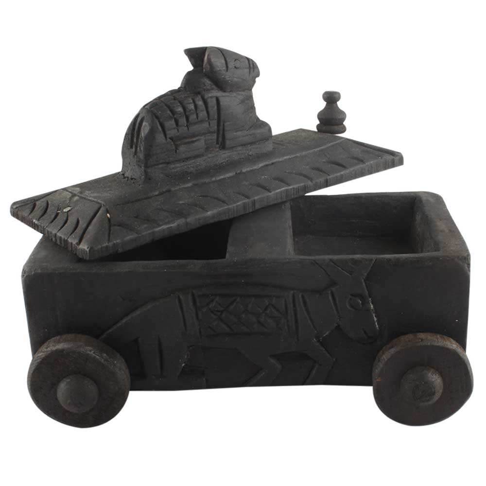 Carved Decorative Nandi Wooden Box. Ceramic Drawers in Wooden Frame. The Spice Boxes are designed with different patterns. These boxes are made using natural wood which does not harm the purity of spices.
