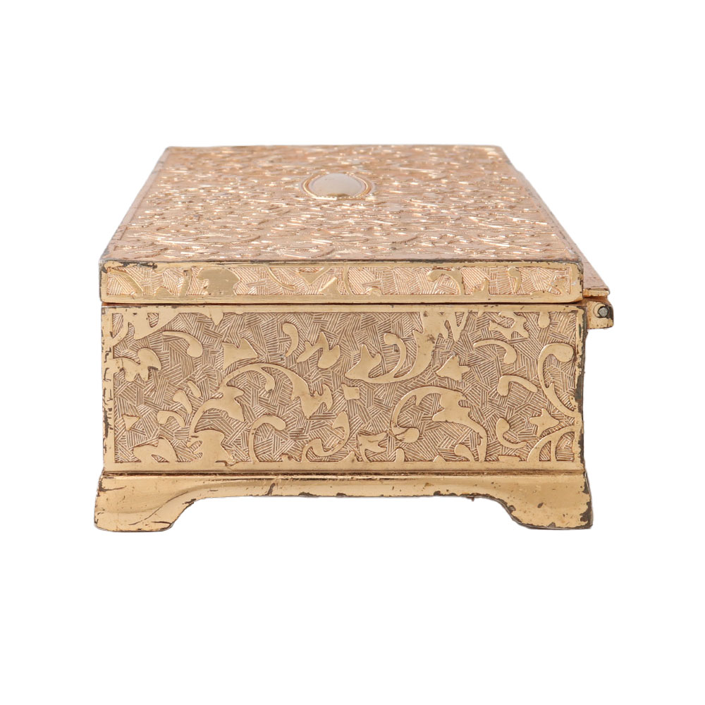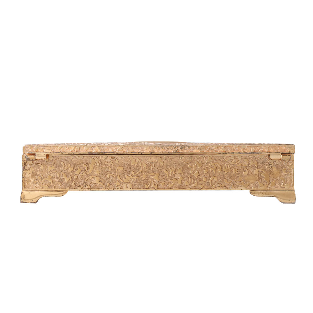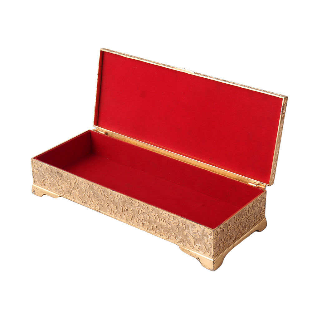 Carved gold Jewellery box is a beautiful way to store your precious ornaments and other delicate accessories; it exudes regality and antiqueness. This jewelry box is made of high-quality factor components and is widely used to keep valuable accessories organized and safe. It can be used as wedding gift, silver plated gift, corporate gift, Personal gift and for wedding Invitation.