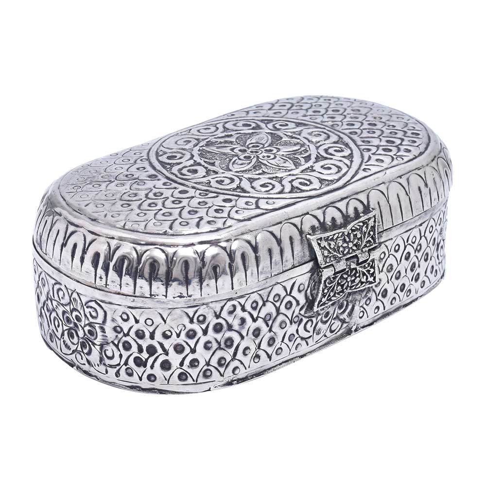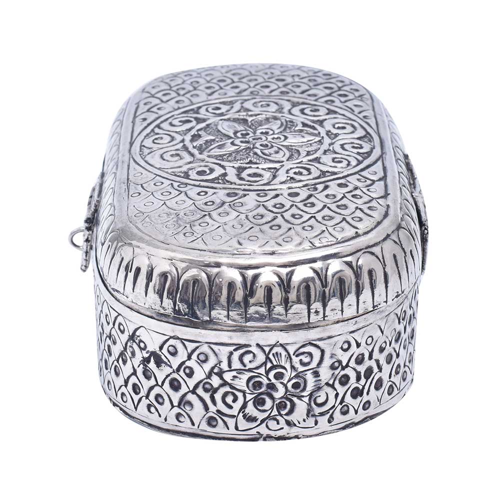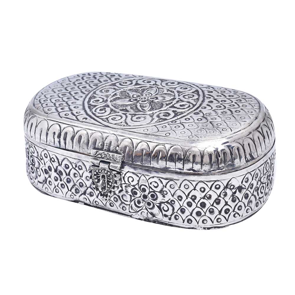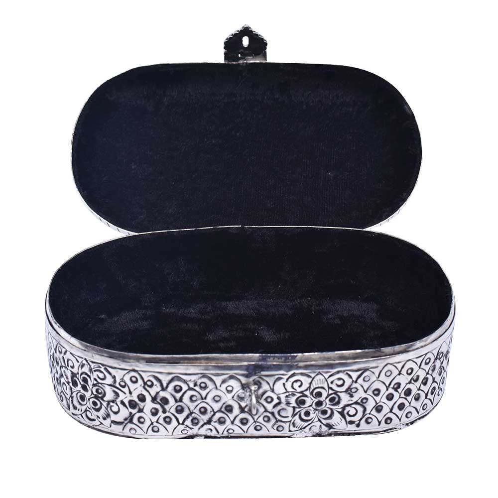 Both men and women can benefit from wearing jewelry, and it is important to keep it secure. Put your priceless jewelry in this white, handcrafted jewelry box with german silver plating. This box, which features a peacock top, will look fantastic on your dresser. A Vintage Metal Jewelry Box Trinket Storage Organizer is a decorative and functional item that is used for storing and organizing jewelry and small trinkets. The box is typically made of metal, either brass or steel, and features intricate designs and details that reflect the vintage aesthetic. The metal material provides durability and protection for the contents of the box, making it a practical storage solution. The vintage design and aesthetic of the jewelry box make it a popular choice for collectors of vintage items and those who appreciate the beauty of antique design. With proper care, a vintage metal jewelry box trinket storage organizer can last for many years and become a cherished family heirloom.