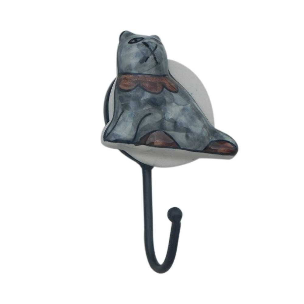 Cat Ceramic Hook. When Put on Wall or Cabinet It is An Art in Itself. This Black Powder Coated Iron Hook is Strong Enough to Hold Your Cloths, Keys, Tea Cups, Coffee Mugs, Hand Towels Etc. It Will Give A Colorful and Artistic Look to Your Kid's Room.