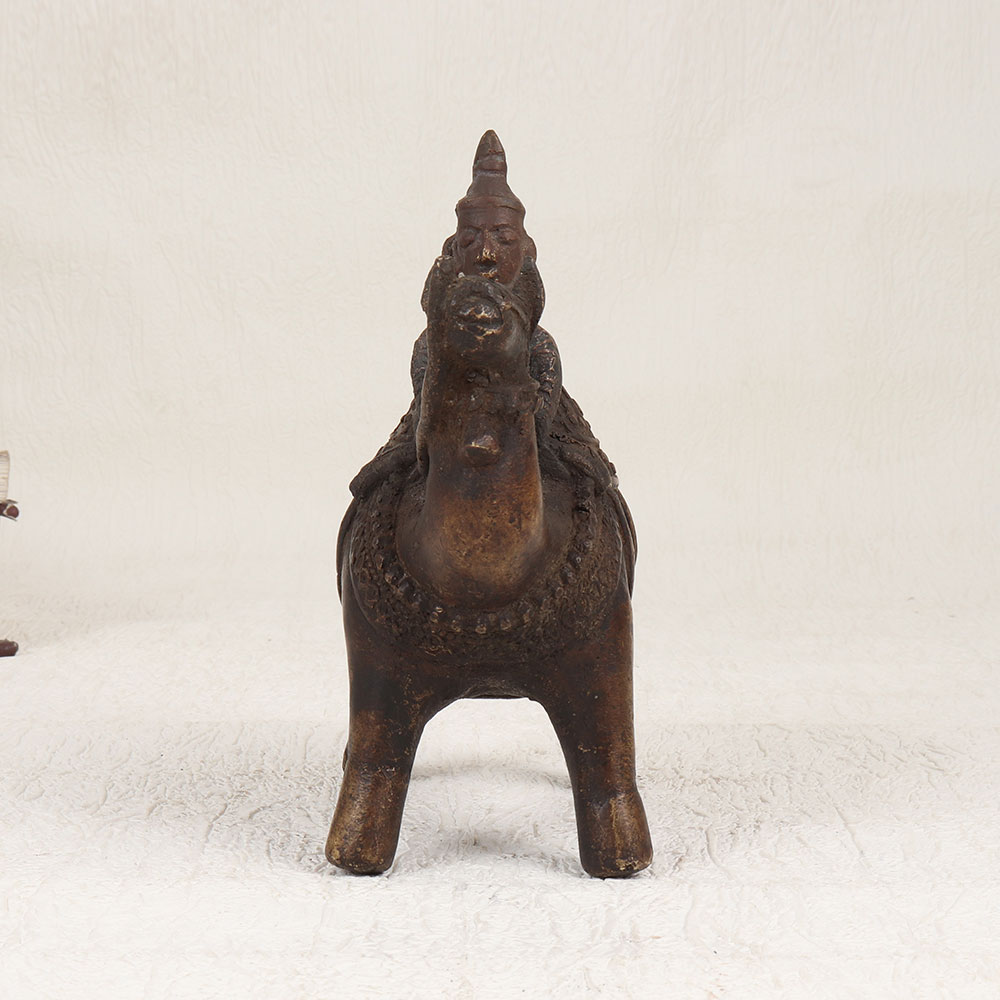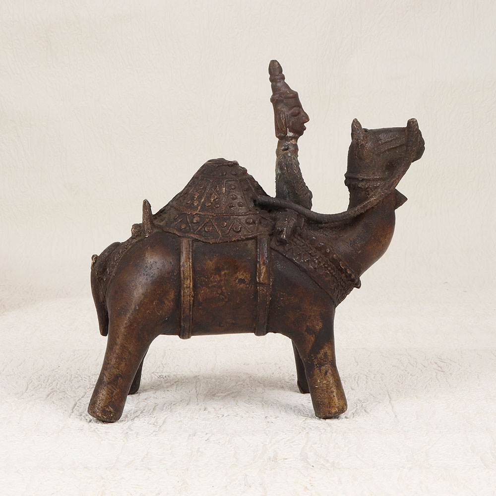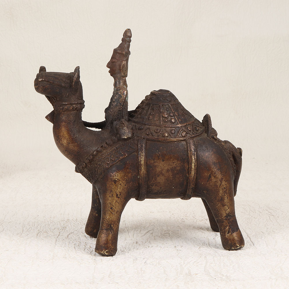 Enhance your decor with the timeless charm of our Vintage Brass Camel with Rider Statue. Handmade by talented artisans from Central India, this exquisite piece showcases the rich heritage of craftsmanship. The statue is meticulously crafted from high-quality brass, ensuring durability and an authentic aesthetic. The antique brown finish adds a touch of nostalgia, evoking the allure of bygone eras. With its intricate detailing and artisanal flair, this statue serves as a striking focal point for any space. Whether adorning your home, office, restaurant, hotel, or cafe, its versatile design seamlessly blends with various settings. This piece is not just a decorative accent but a valuable addition to your vintage collection, embodying the elegance of traditional Indian artistry. Celebrate special occasions by gifting this masterpiece to your family, friends or relatives, offering a unique and thoughtful present that symbolizes craftsmanship, history, and cultural richness.