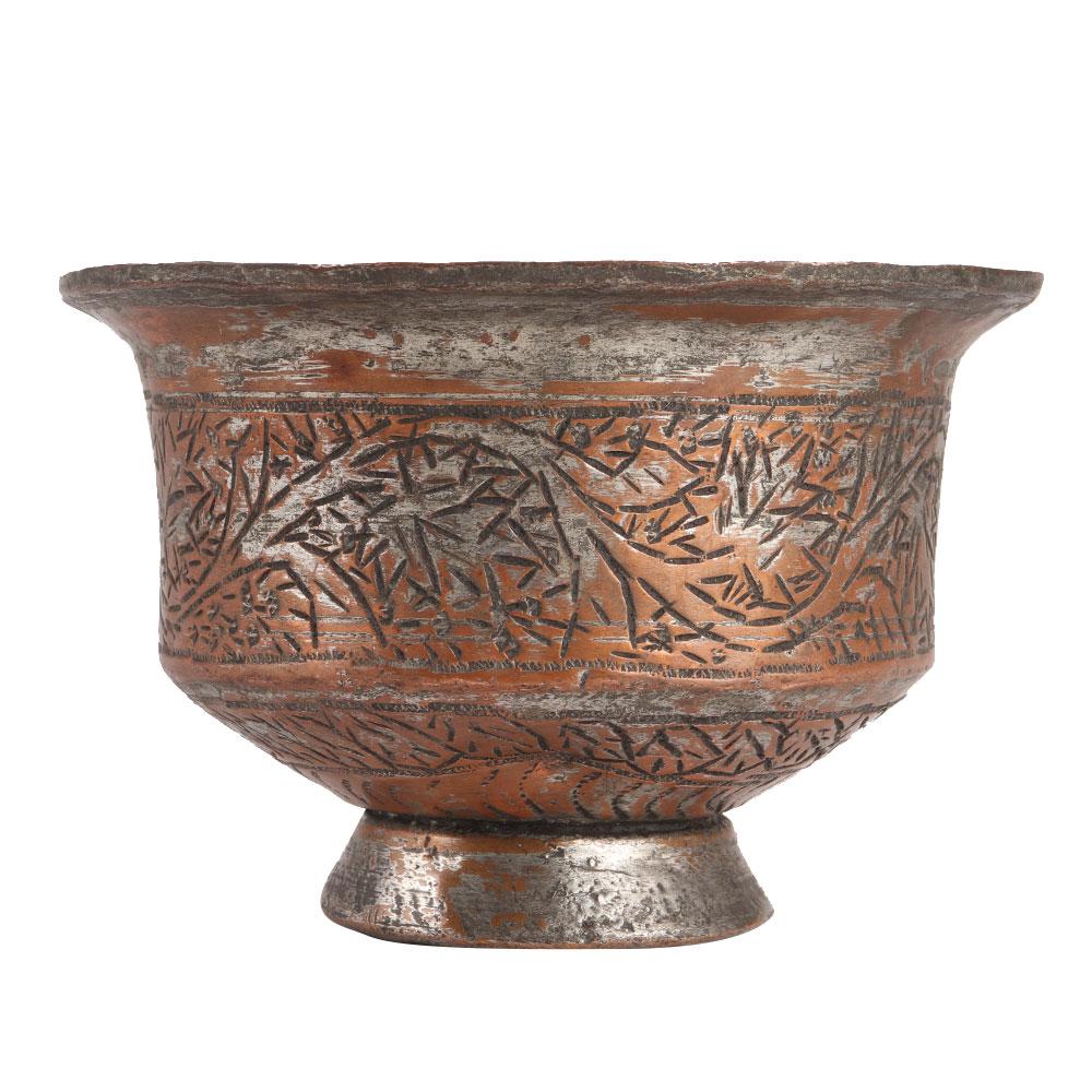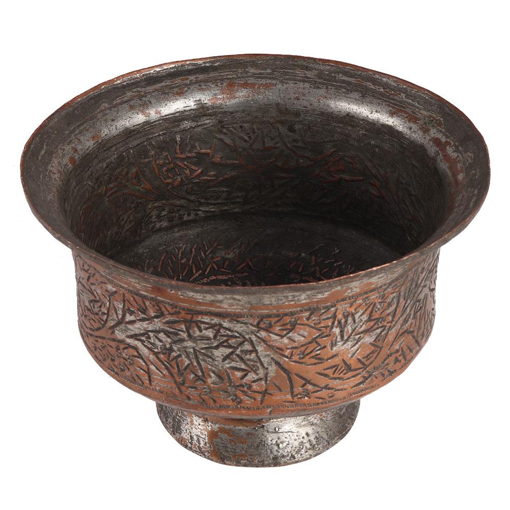 This carefully crafted copper cup or bowl with central Persian style caving work is ideal for home, hotel, and bar adornment, as well as a Diwali, Xmas, or house warming party gift.