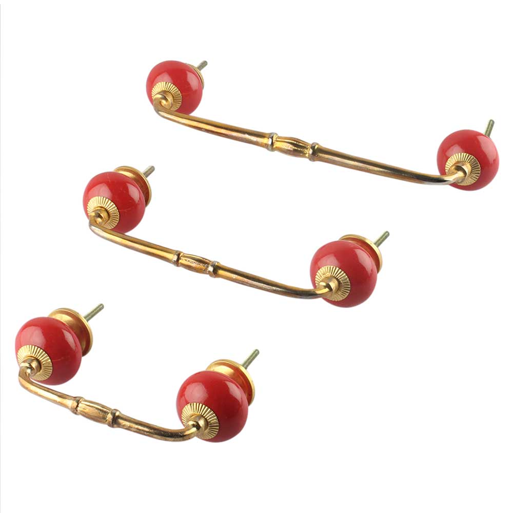 Red Ceramic Bridge Handle. Ideal for Drawer, Dresser, Cabinet, Wardrobe, Cupboard and Almirah.