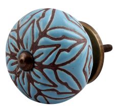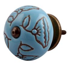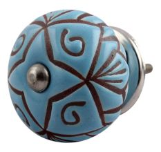 Turquoise Etched Ceramic Floral Cabinet Knob Online...