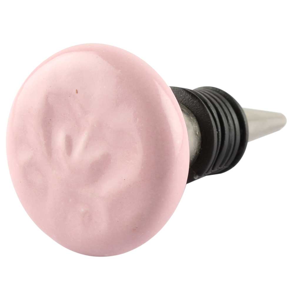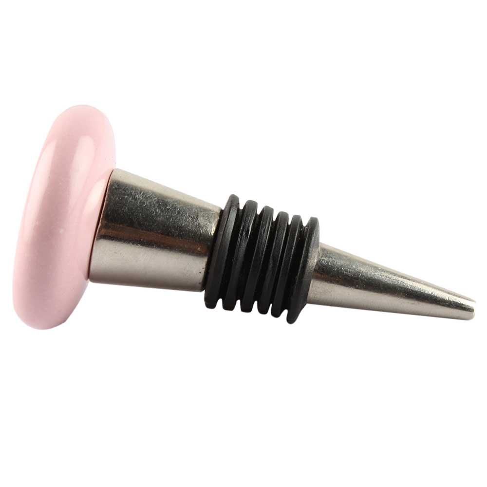 Ceramic Flat Wine Stopper in Pink Flower. Zinc Alloy Wine Bottle Stopper with Attractive Jute Bag Packaging.