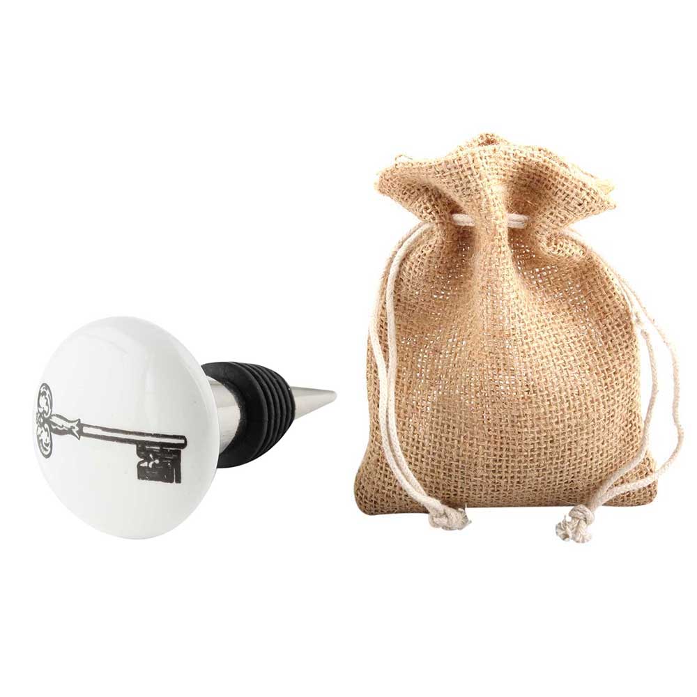 Ceramic Key Painted Wine Bottle Stopper. Zinc Alloy Wine Bottle Stopper with Attractive Jute Bag Packaging.