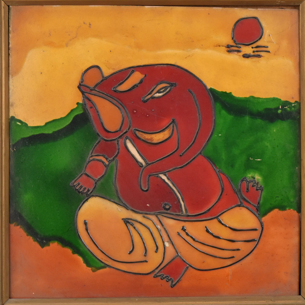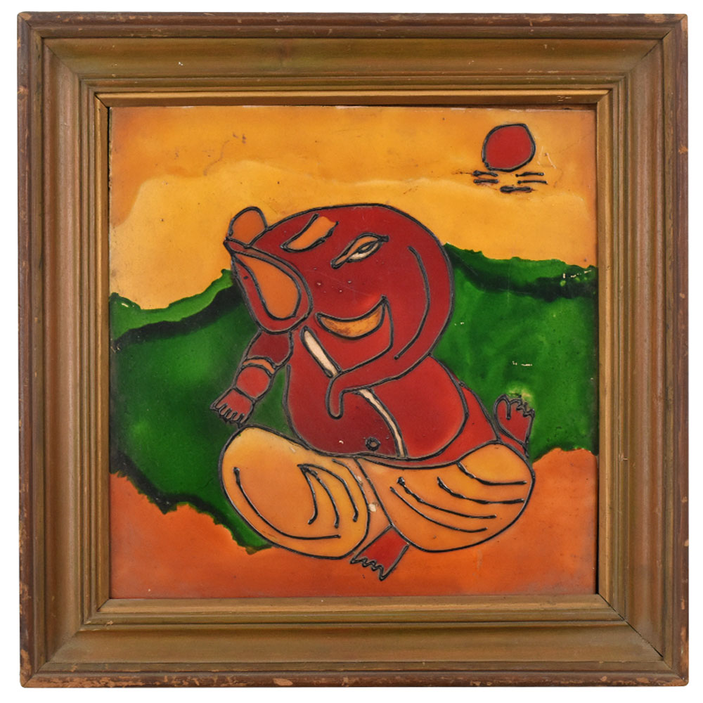 - Hand-painted ceramic tile artwork of Lord Ganesha