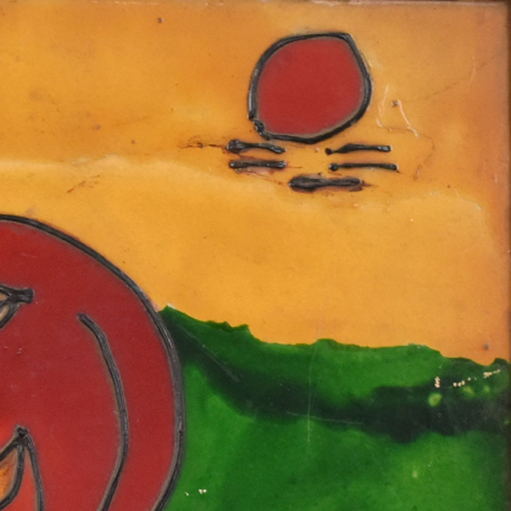 Bring home divine art with this beautifully handcrafted ceramic tile painting of Lord Ganesha, framed in a rustic wooden border. The artwork showcases a vibrant depiction of Ganesha, the remover of obstacles and the symbol of wisdom and prosperity, rendered in bold colors of red, green, orange, and yellow. The handcrafted detailing on ceramic tile creates a textured finish that adds charm to your living space, pooja room, or office wall. The wooden frame enhances the traditional appeal, making it a unique collectible and a thoughtful gifting option for festive occasions, housewarmings, or spiritual celebrations. With its artistic strokes and symbolic presence, this ceramic painting seamlessly blends tradition with creativity, adding positive energy and cultural elegance to any decor.