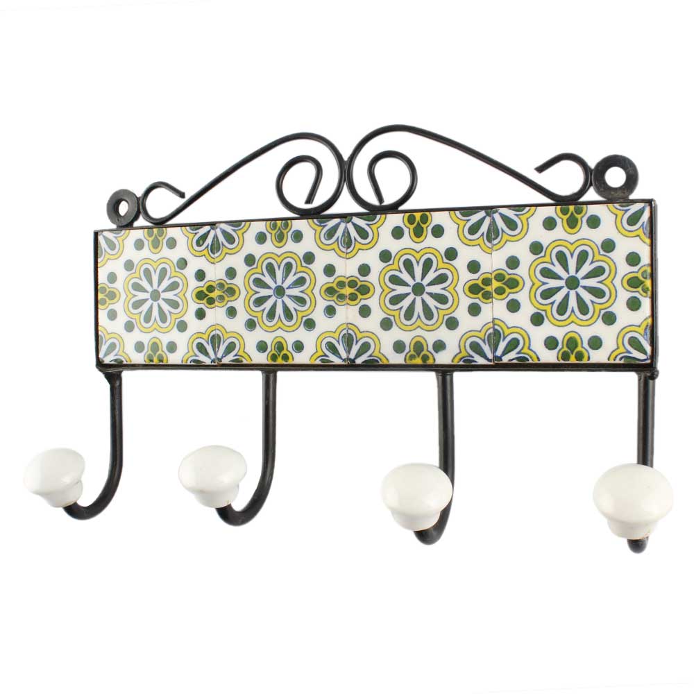 Ceramic Wheel Flower Tile Hook in Forest Green. When Put on Wall or Cabinet It is An Art in Itself. The Metal Part of this Hook is Black Powder Coated.