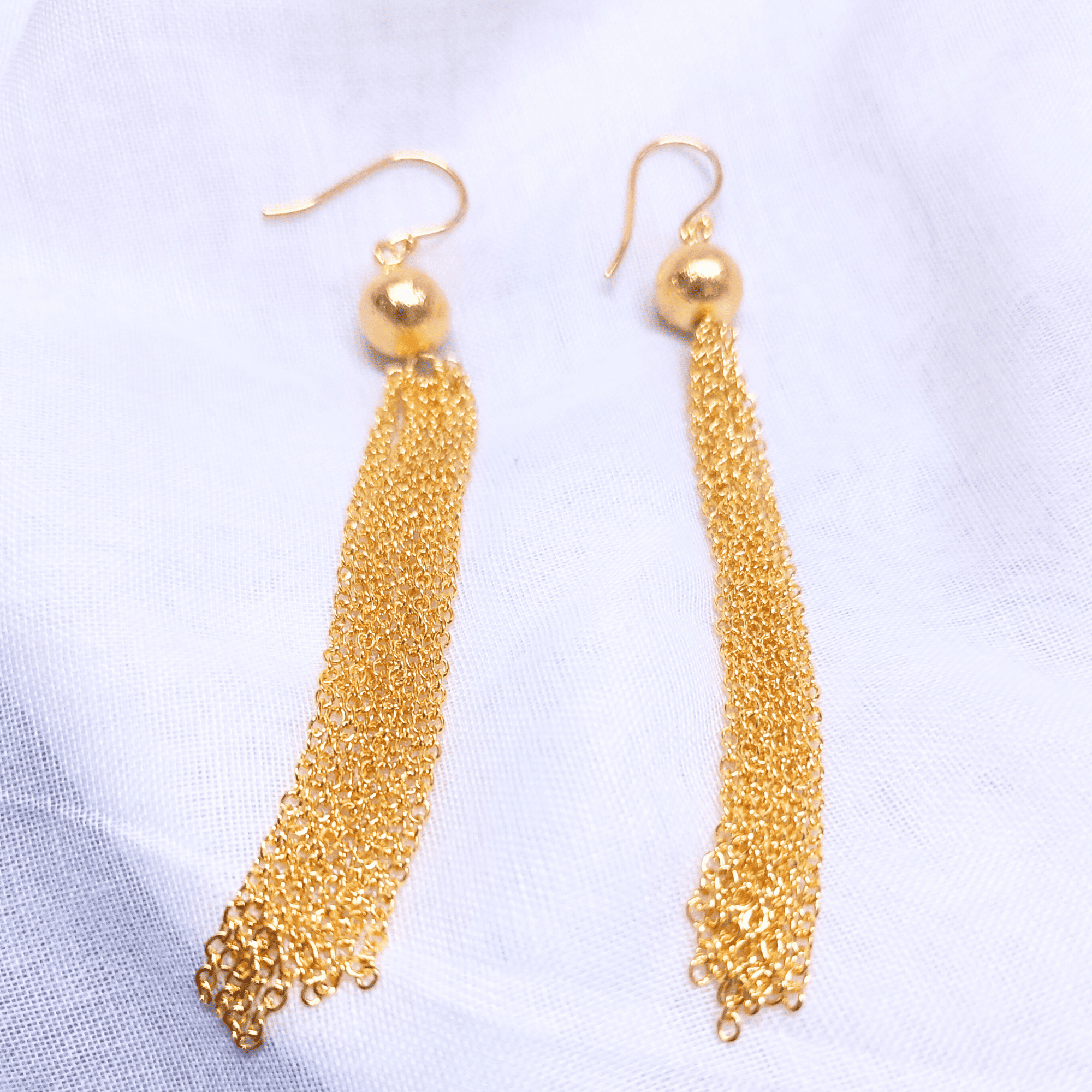 The Chain Fringe Dangle Earrings bring the perfect balance of sophistication and movement, handcrafted to shimmer with every step. Made from high-quality brass and plated in radiant 22K gold, these long, fluid earrings feature cascading chain fringes that create an eye-catching rhythm of elegance. Designed for women who love bold yet timeless jewelry, they add instant glamour to any look — making them a favorite for boutique and wholesale jewelry lines.