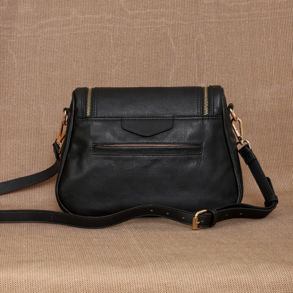 - Crafted from charcoal black leather with careful attention to detail and lined with soft microsuede for the sling bag