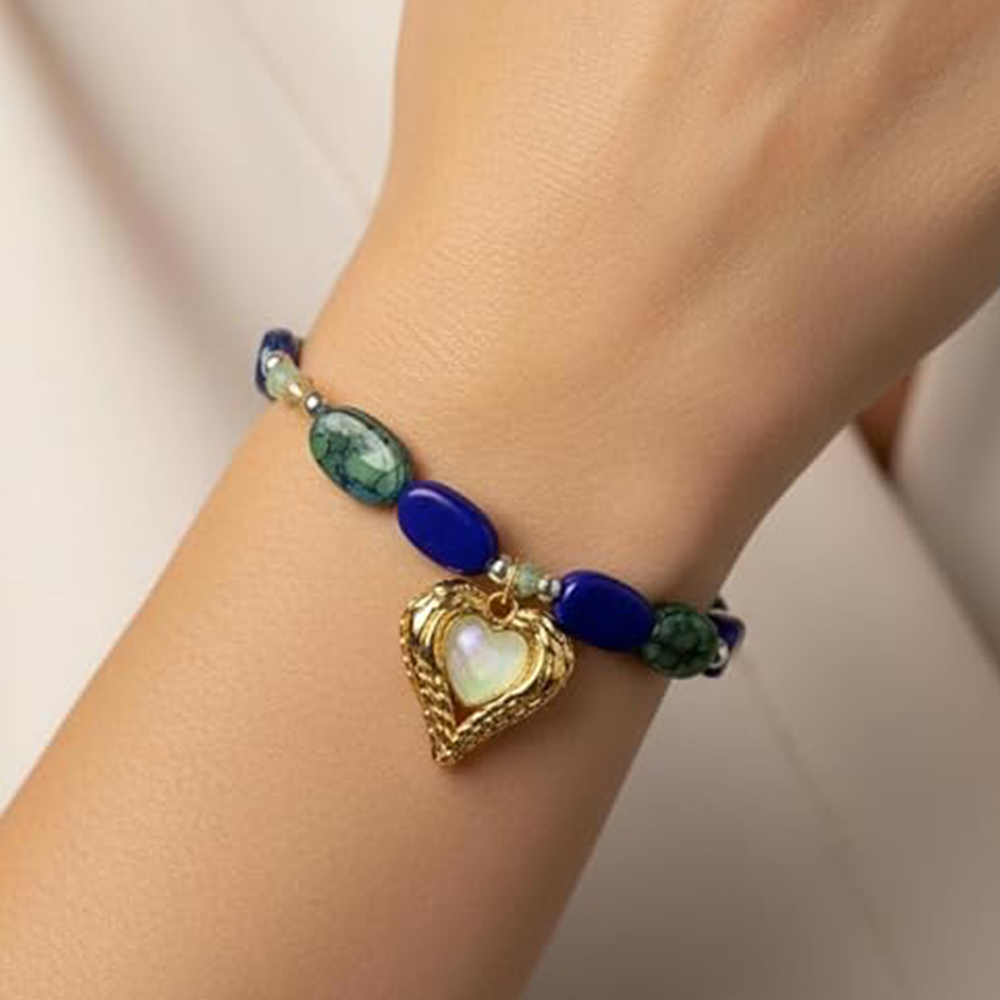 The Charmheart Stretch Band brings together soft color, natural stone energy, and effortless comfort. Crafted with multicolored semi-precious stones, this bracelet carries a calm, heartfelt presence that feels personal and expressive. Each stone’s natural hue and texture add quiet character, making the piece feel intimate rather than ornamental. Designed with a stretchable band, it moves with the wrist, offering ease for everyday wear and mindful moments alike.