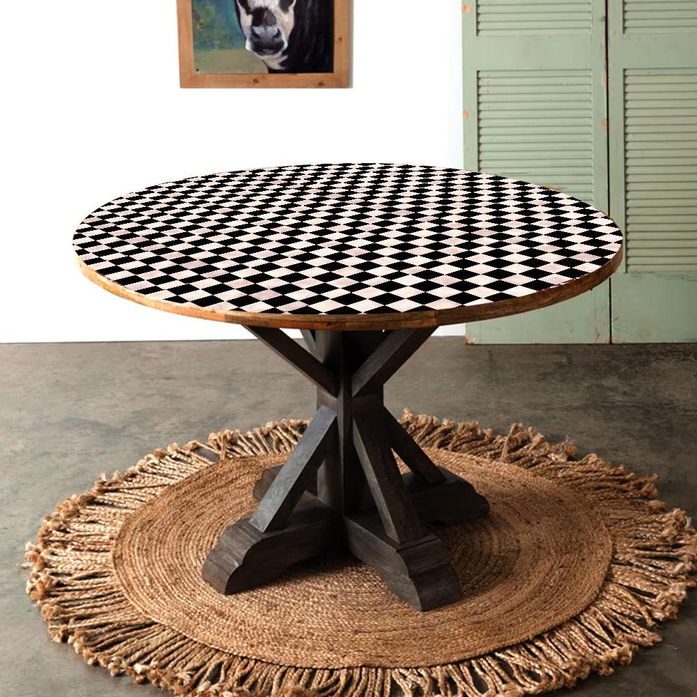Buy a handmade table top online that is crafted by skilled Indian artisans and designed to captivate with its elegant blend of wood, acrylic, and resin. Inspired by the timeless game of chess, this table top boasts a mesmerizing black and white checkered pattern, creating a visually striking centerpiece for any space. Perfectly suited for adorning your home's dining table, it brings an air of sophistication and charm to your everyday meals. Additionally, it serves as an enchanting decorative piece for coffee tables in restaurants or hotels, effortlessly enhancing the ambiance of any setting. Not only does this table top augment the aesthetic appeal of your surroundings, but it also serves a practical purpose. Acting as a protective barrier against dust, it safeguards your precious surfaces, ensuring their longevity. Choose from two alluring options, one with a circular shape and the other with a rectangular silhouette, allowing you to find the perfect fit for your personal taste and interior design. Indulge your loved ones with this truly remarkable piece, as it makes for a remarkable gift on special occasions and festivals, showcasing your thoughtfulness and appreciation for their discerning taste. Crafted with utmost care and precision, this table top is a testament to the skill and dedication of Indian craftsmen, promising to be a cherished heirloom for years to come.