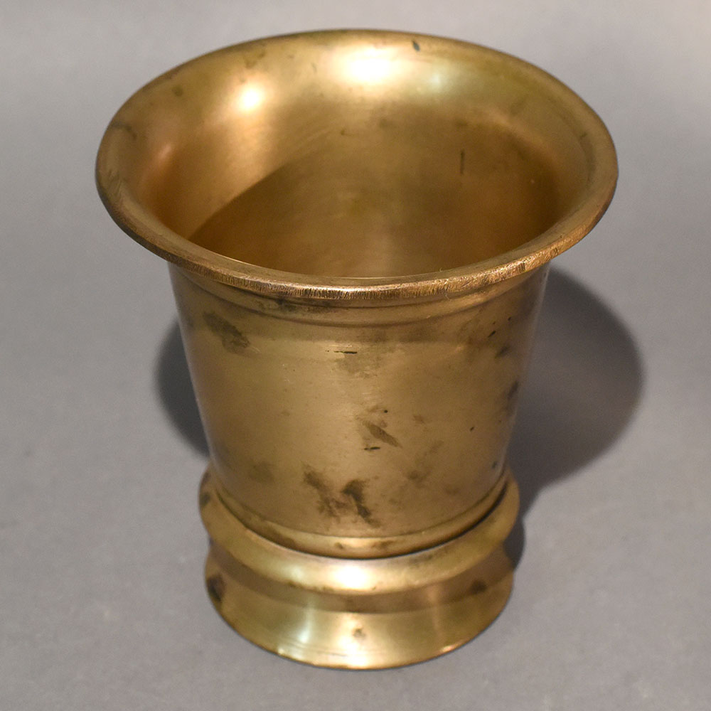 This classic brass drinking cup handcrafted in traditional form represents simplicity, durability, and timeless household utility. Designed with a gently curved body and a broad pedestal base, the cup offers both stability and comfortable handling. The slightly flared rim enhances ease of use while maintaining a clean and balanced silhouette. The warm golden brass finish reflects subtle tonal variations and natural marks that highlight its artisanal origin. The smooth interior surface is crafted for practical serving, making it suitable for water, milk, buttermilk, or traditional beverages. The sturdy base adds a refined proportion, ensuring that the tumbler remains stable on flat surfaces during use. Brass utensils have been valued for generations in traditional households for their strength and cultural significance. This handcrafted brass cup can be used for daily dining rituals, festive occasions, temple offerings, or heritage-style table settings. Its compact and versatile form allows it to complement both classic and contemporary interiors. Crafted using traditional metal shaping techniques, the solid brass construction ensures long-term durability and reliable use. Natural finish variations reinforce its handmade authenticity, making each piece slightly distinct. The understated design makes it equally suitable for practical use or as a decorative element in kitchen displays.