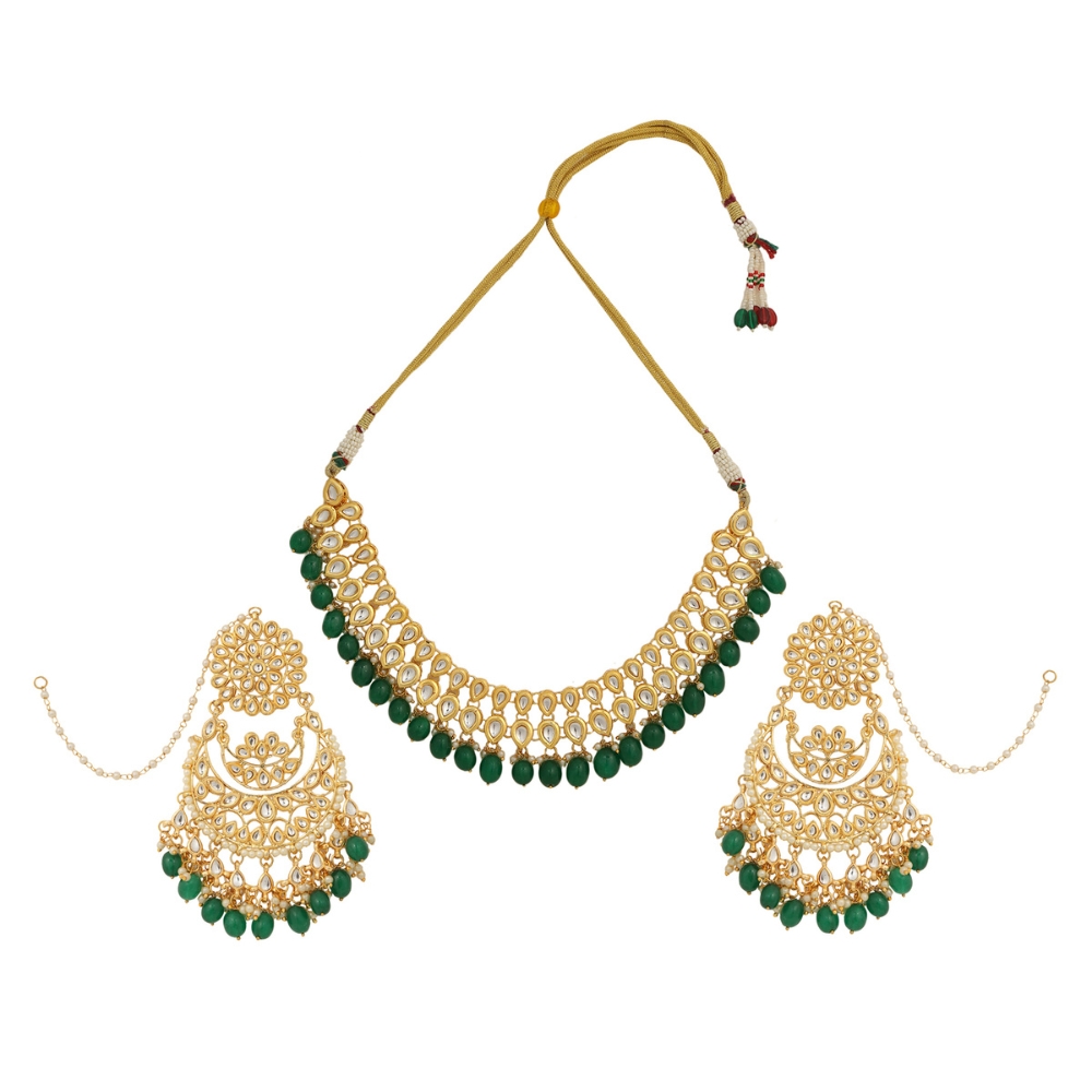 Refine your bridal and festive look with this Classic Kundan Necklace Jewellery Set, featuring a beautifully structured necklace and matching chandelier earrings. Designed with traditional kundan stone settings and bead detailing, this set offers a balanced blend of elegance and statement appeal for weddings, receptions, and cultural celebrations. Packed & quality-checked by Indianshelf.